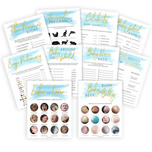 10 Blue Hearts MEGA Baby Shower Games Bundle