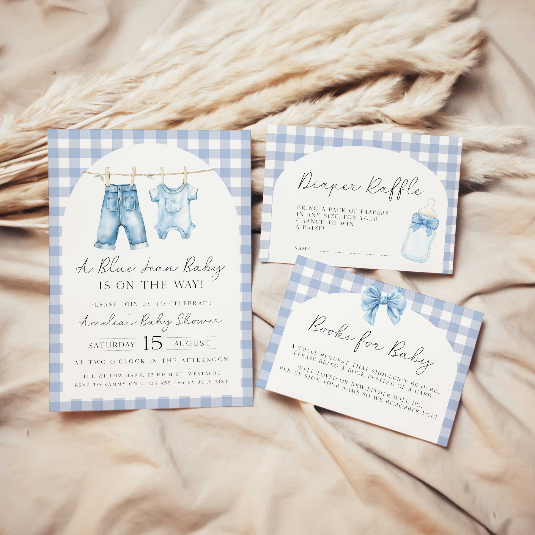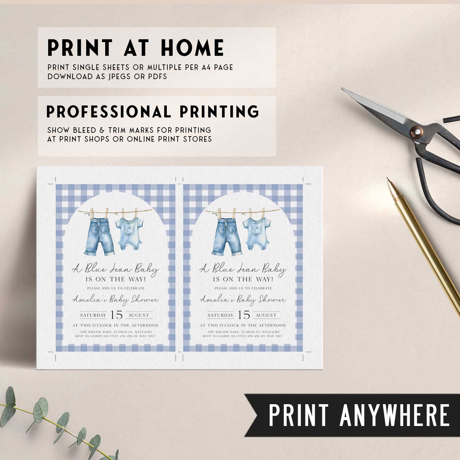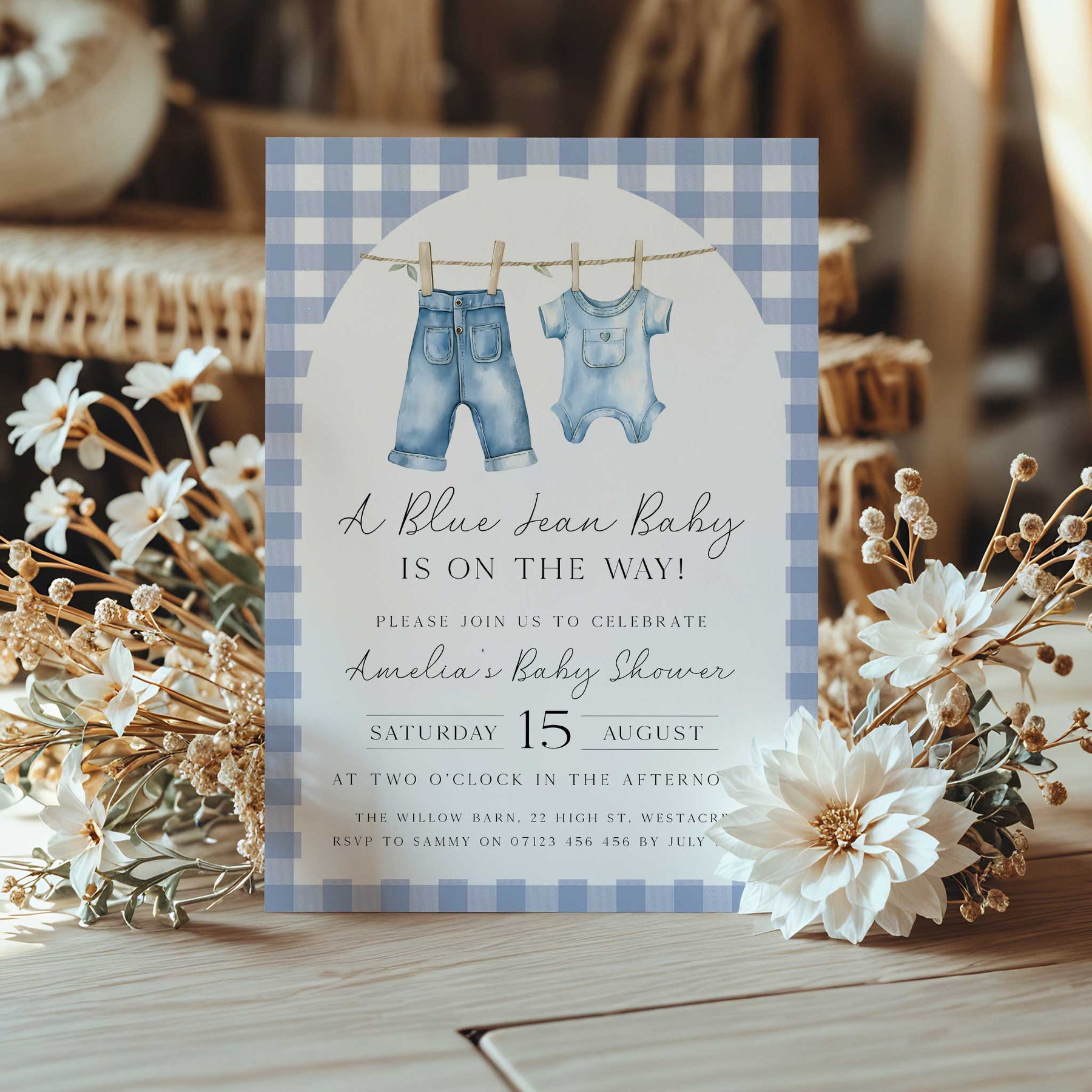 Celebrate the sweetest new arrival with our "Blue Jeans Baby" baby shower invitation – a charming, demin-themed design perfect for modern moms and cozy gatherings! Customise effortlessly and print today, it couldn't be easier.