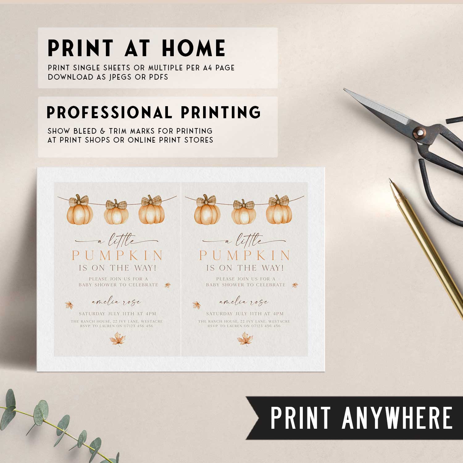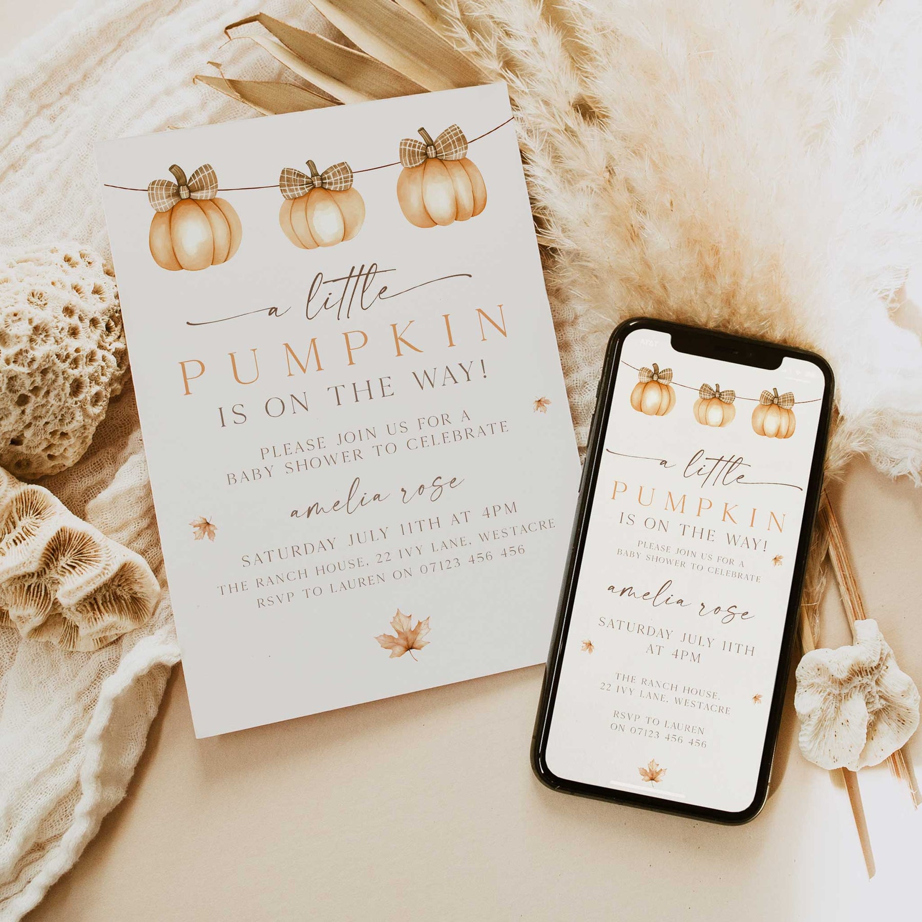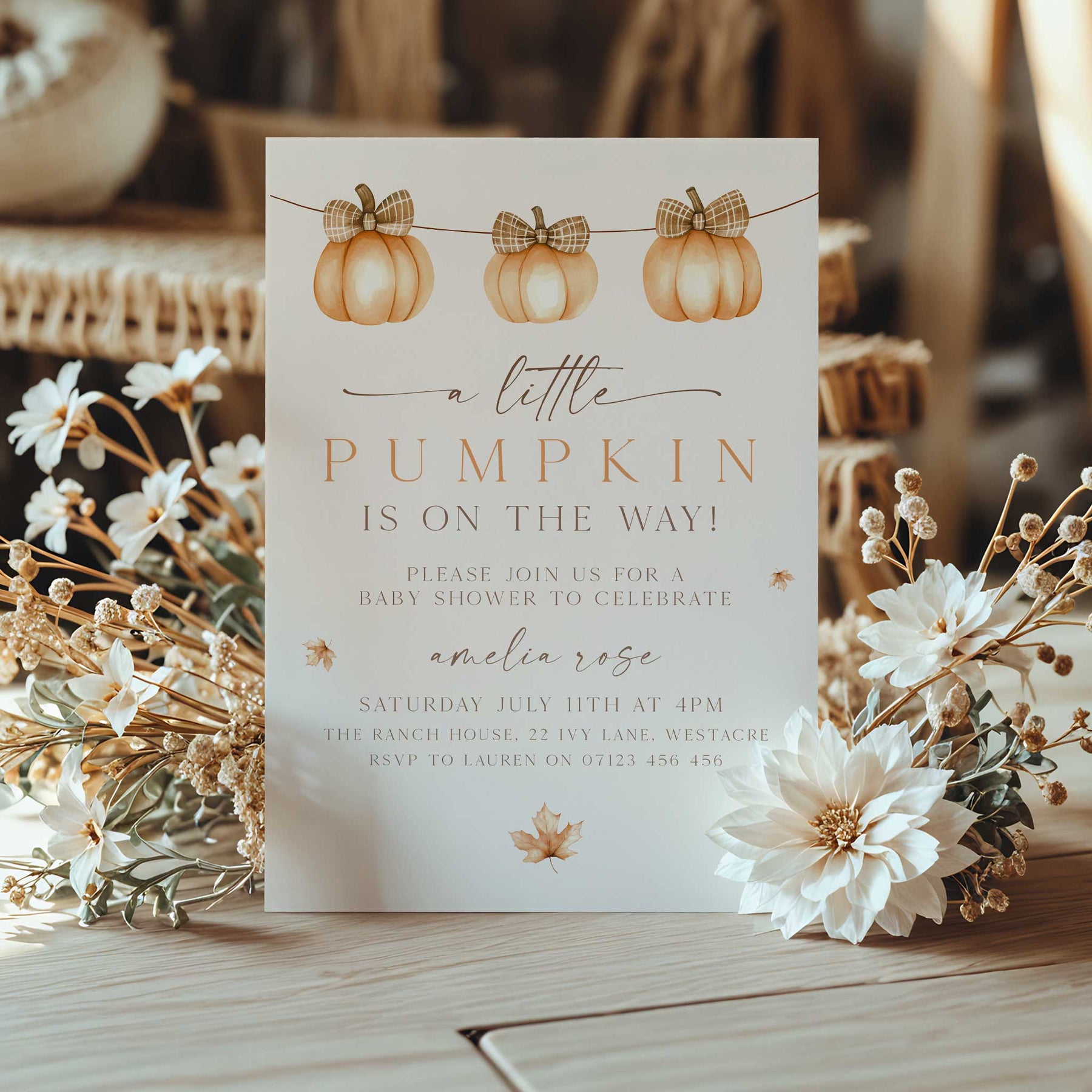 Celebrate the joy of new beginnings with our Little Pumpkin Fall baby shower invitation, adorned with gorgeous illustrations. This editable invitation is perfect for welcoming the arrival of a precious little one. Customise effortlessly and print today, it couldn't be easier.