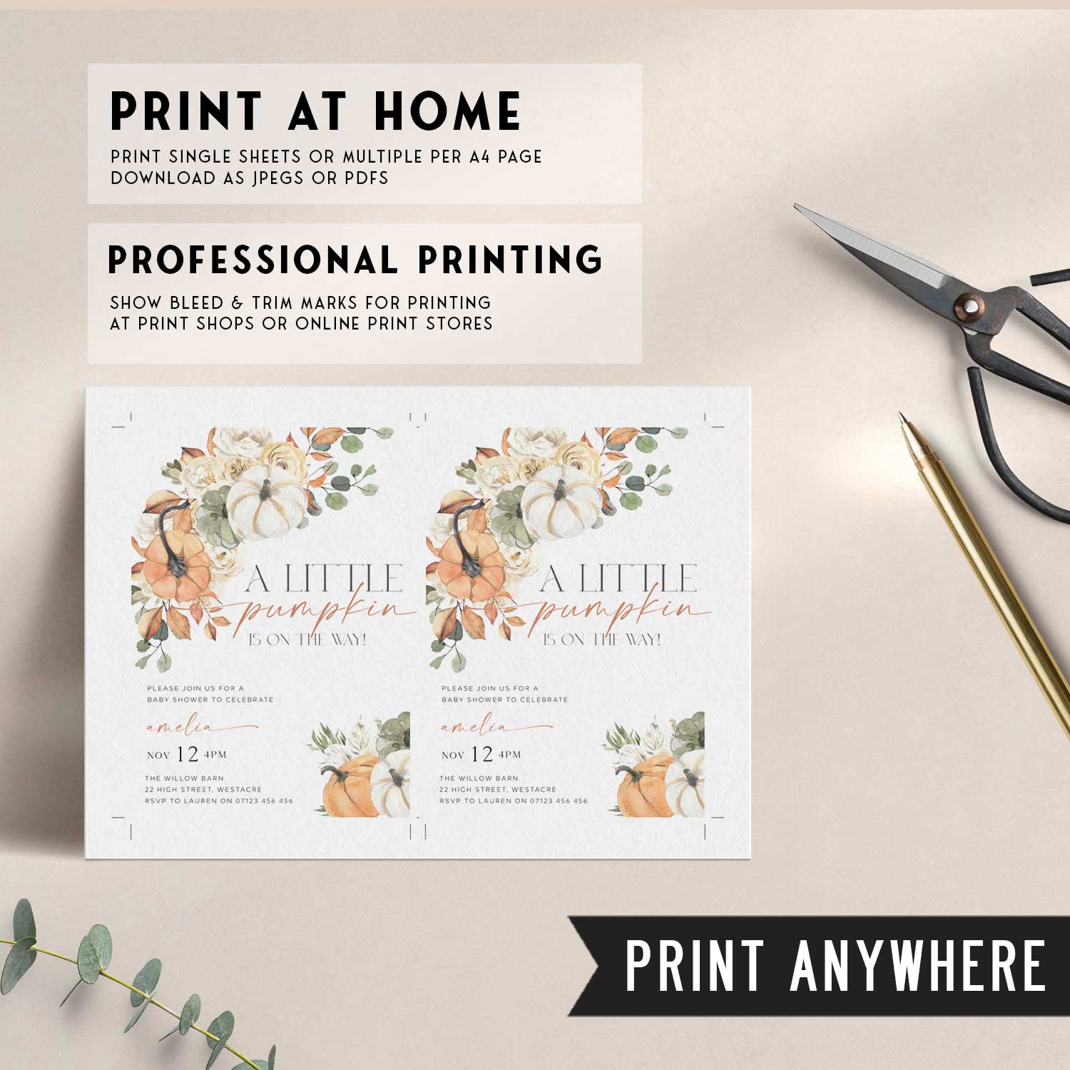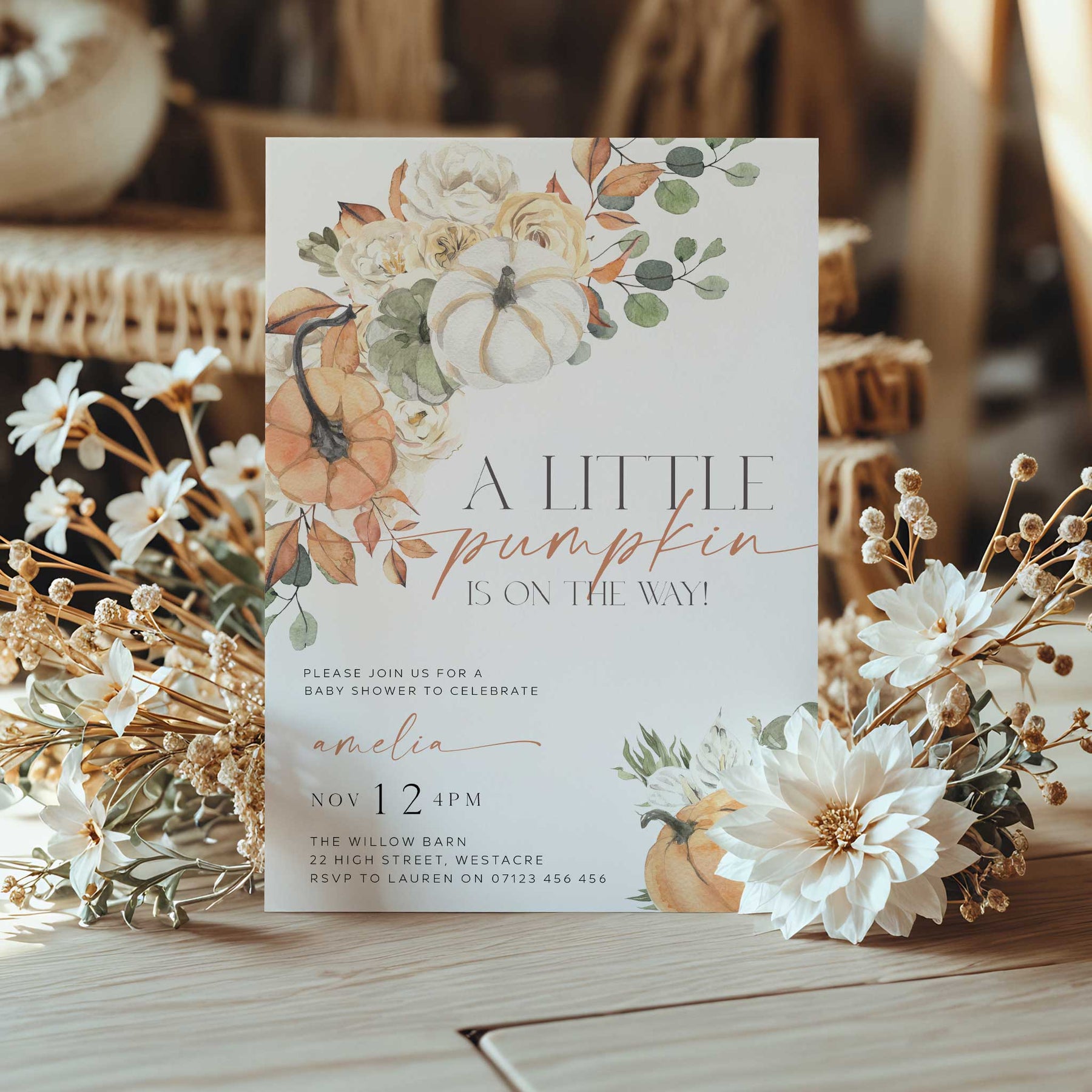 Celebrate the joy of new beginnings with our Little Pumpkin Fall baby shower invitation, adorned with gorgeous illustrations. This editable invitation is perfect for welcoming the arrival of a precious little one. Customise effortlessly and print today, it couldn't be easier.