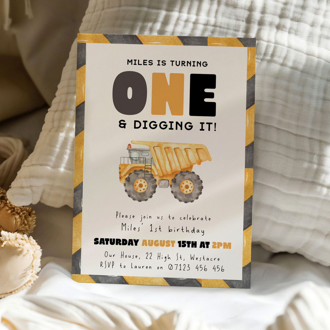 1st Birthday Construction Truck Invite