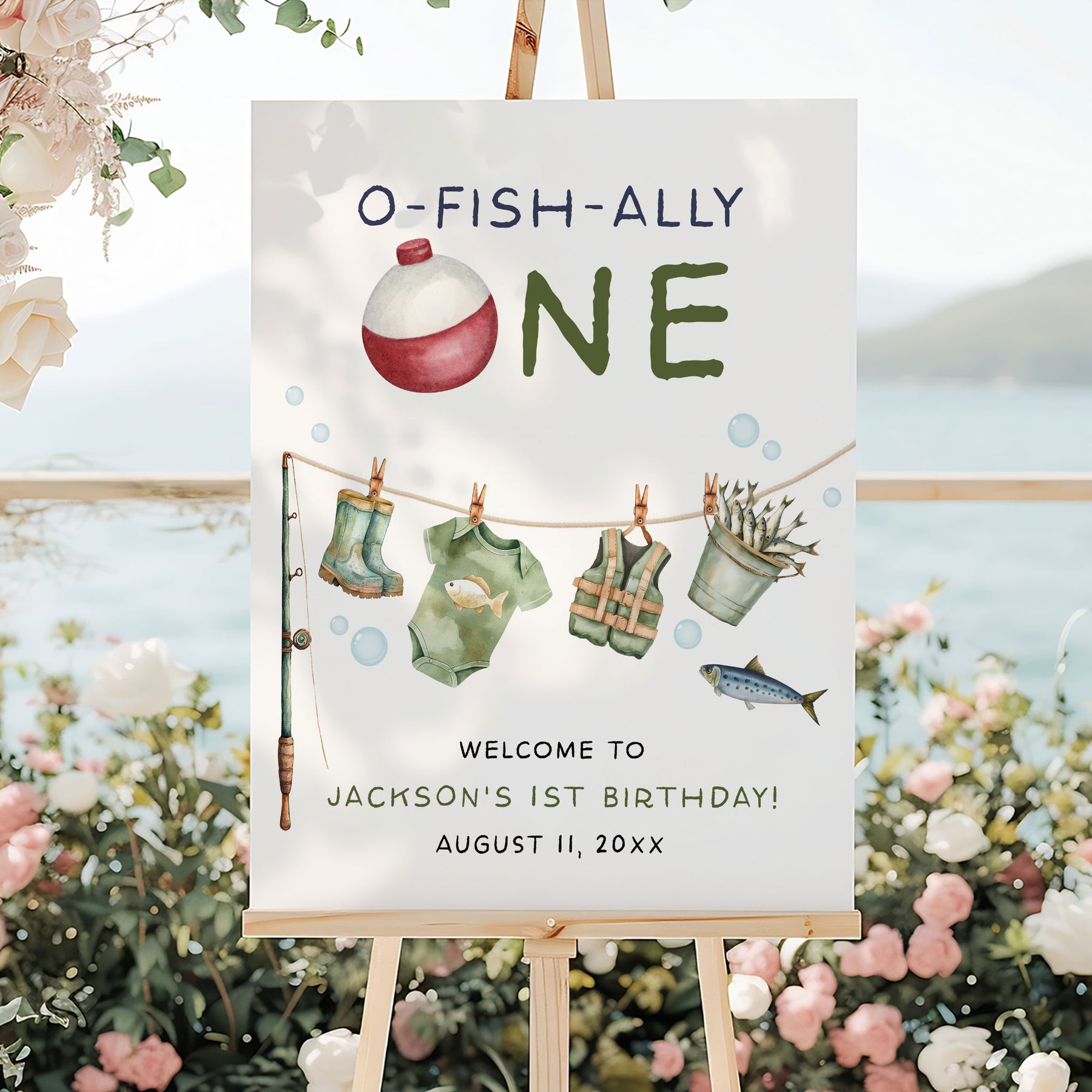 Celebrate your little one's special day with our 'O-Fish-Ally One' editable birthday welcome sign. Featuring fishing illustration, this editable sign adds a special touch to your celebration. Edit, download and print today, it couldn't be easier.
