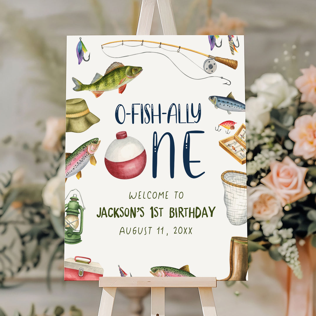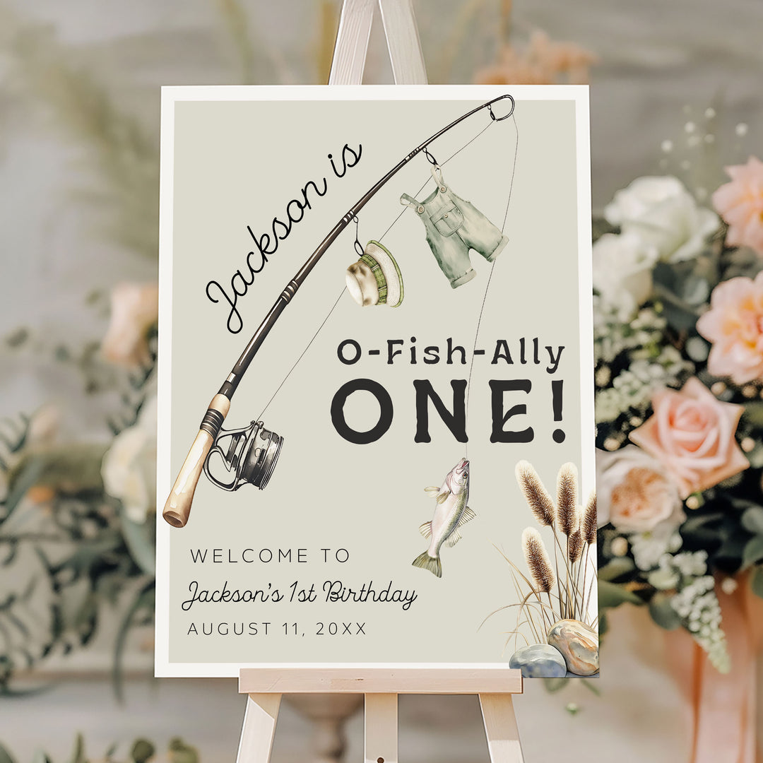 O-Fish-Ally One Modern Birthday Editable Invitation