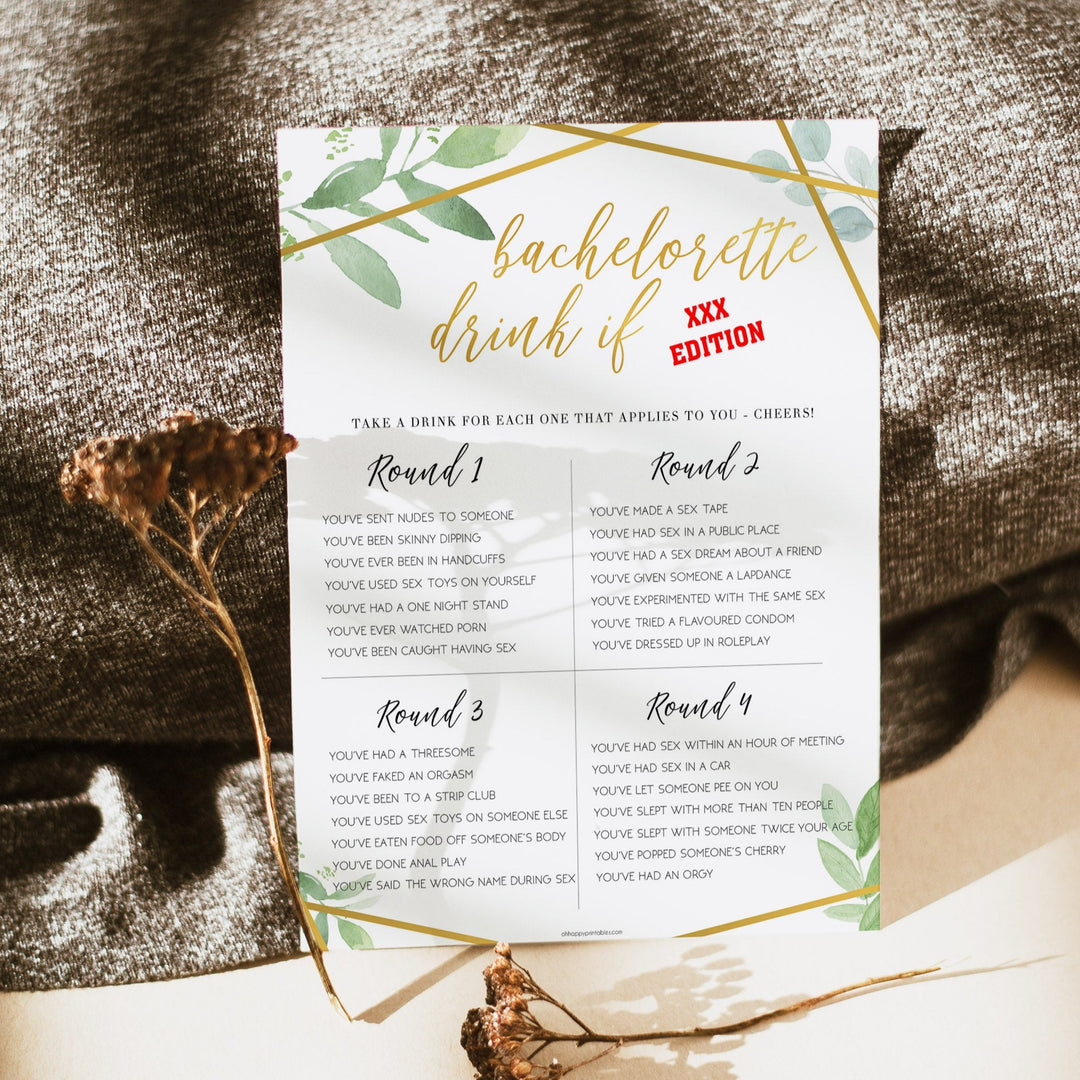 X Rated Bachelorette Drink If Game - Gold Greenery