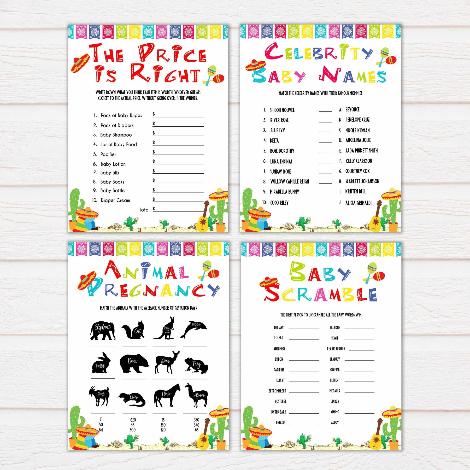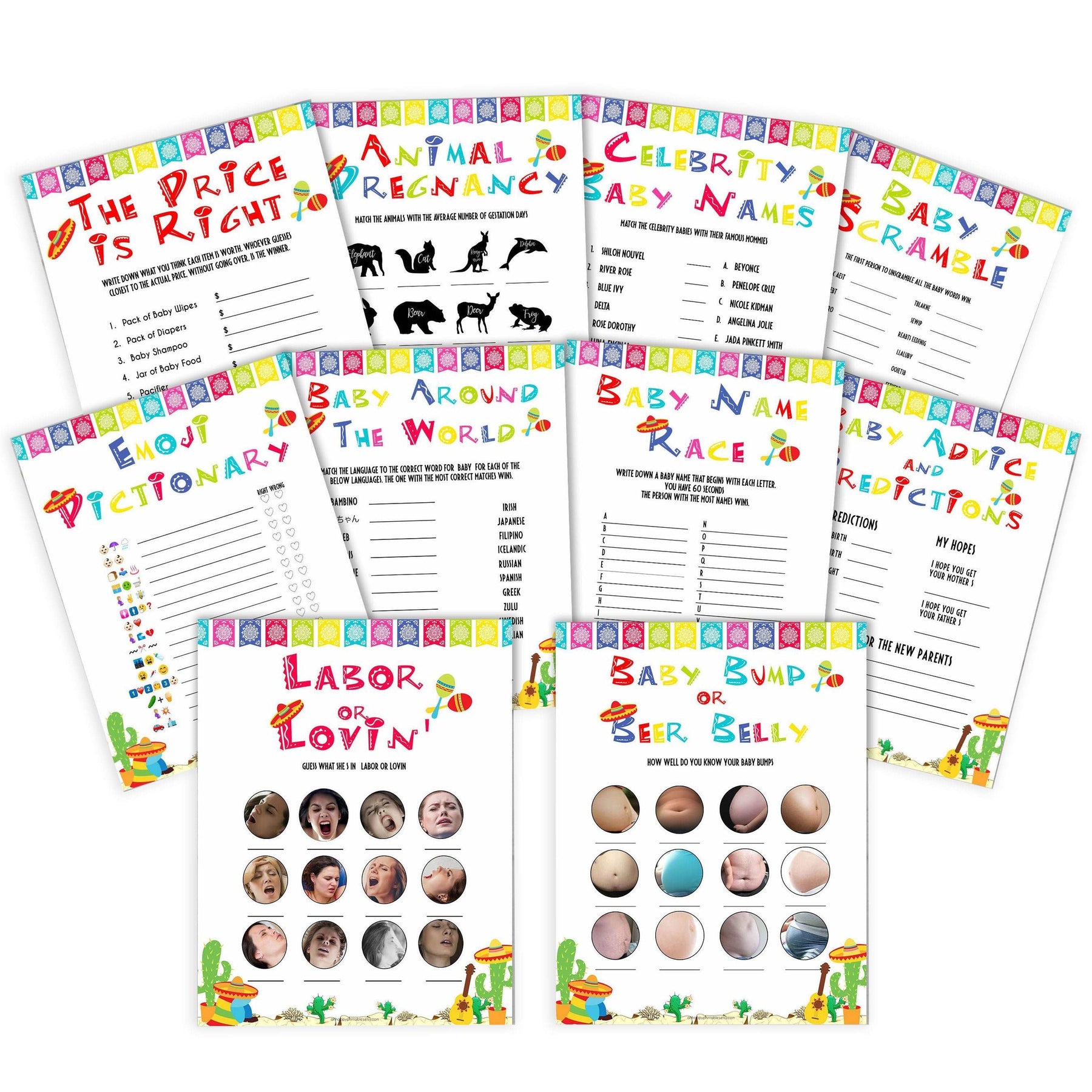 Get all your baby shower party games in one place with this gorgeous baby shower games pack. Featuring 10 of our most popular games, all you need to do is download and print at home.