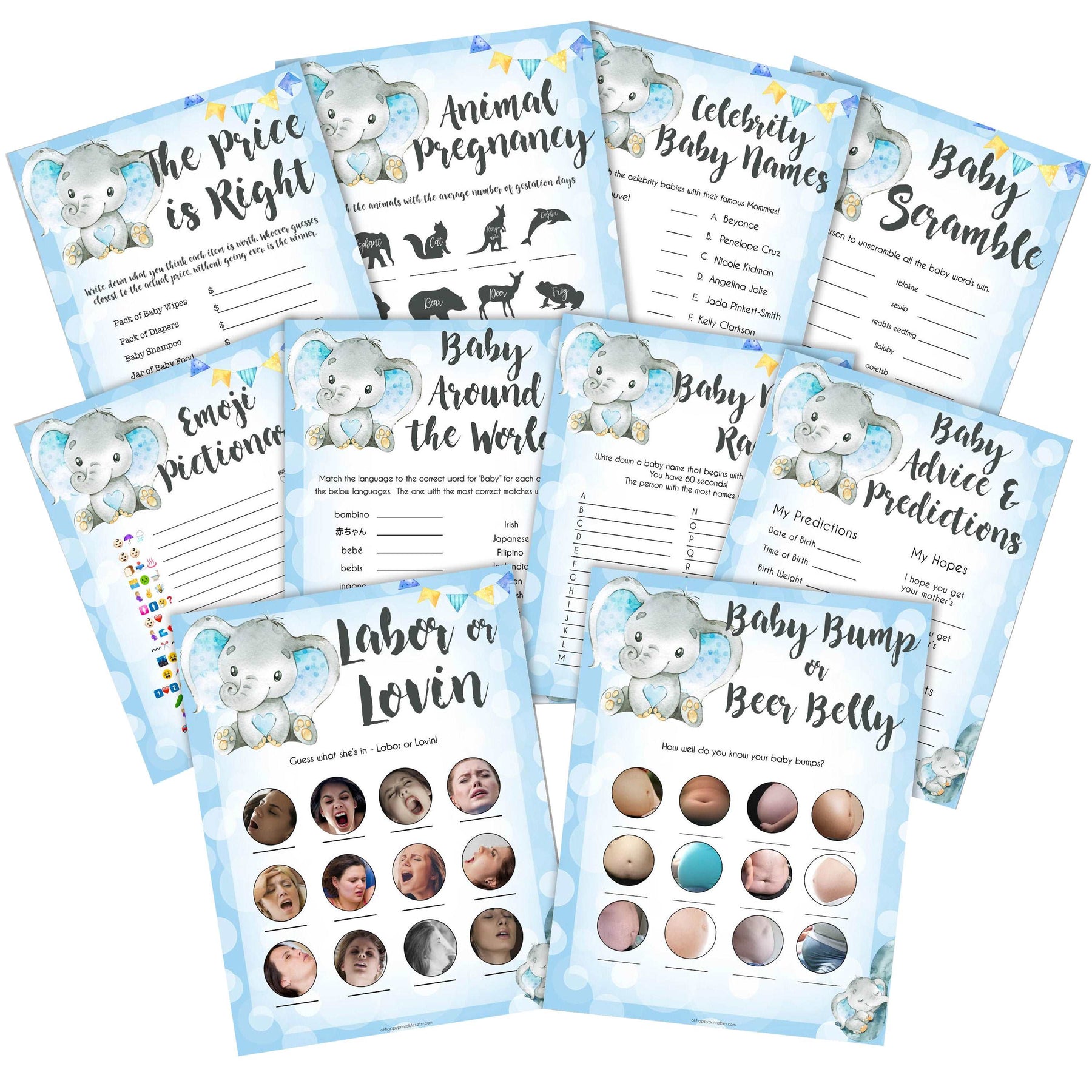 Get all your baby shower party games in one place with this gorgeous baby shower games pack. Featuring 10 of our most popular games, all you need to do is download and print at home.