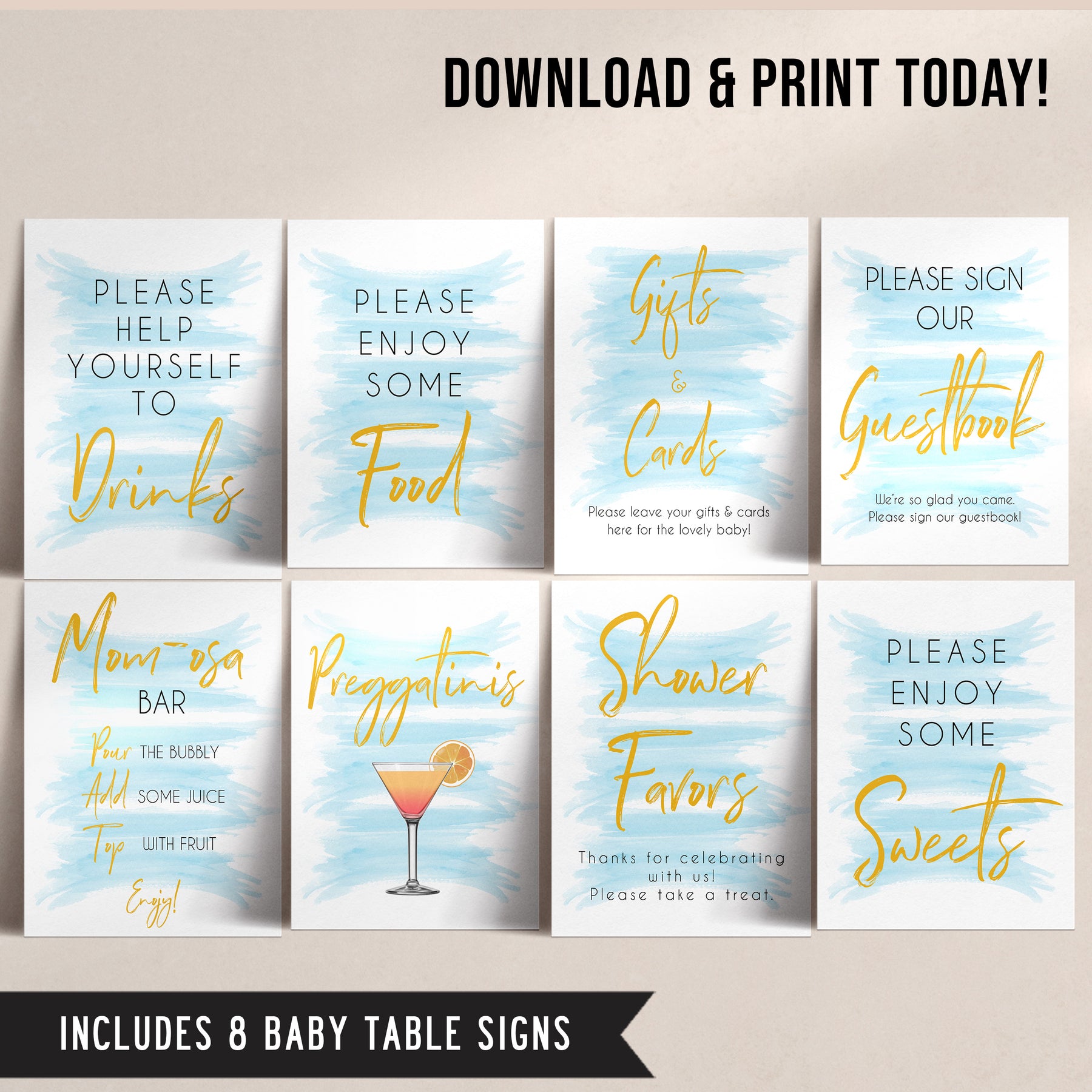 Add the finishing touch to your baby shower with this 8 pack baby table sign bundle.