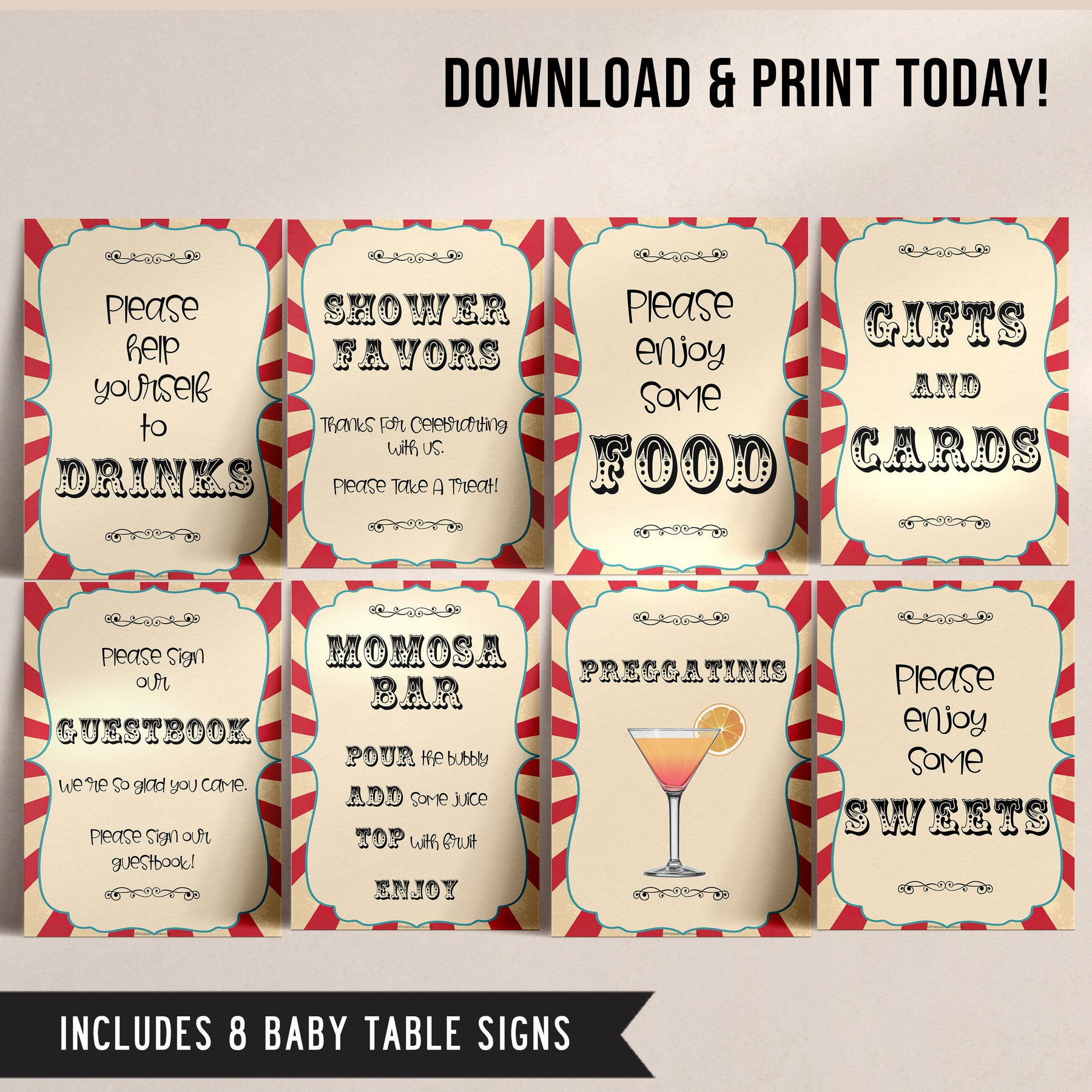 - 2x Preggatinis Sign (8.5" by 11") & (5" by 7" - 2 per page)