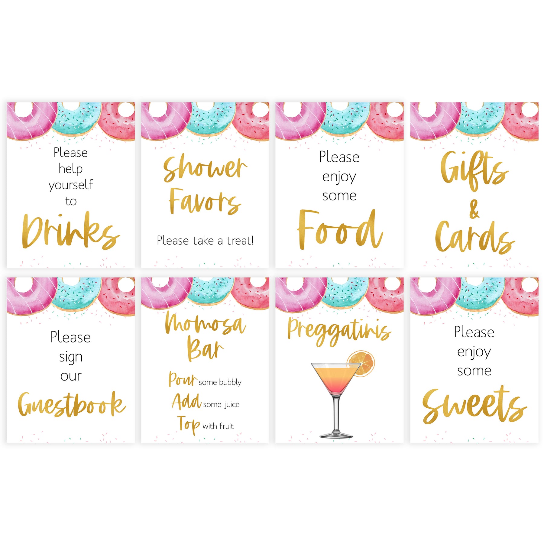 8 baby shower table signs, printable table signs, Donut baby decor, printable baby table signs, printable baby decor, baby sprinkles table signs, fun baby signs, baby donut fun baby table signs