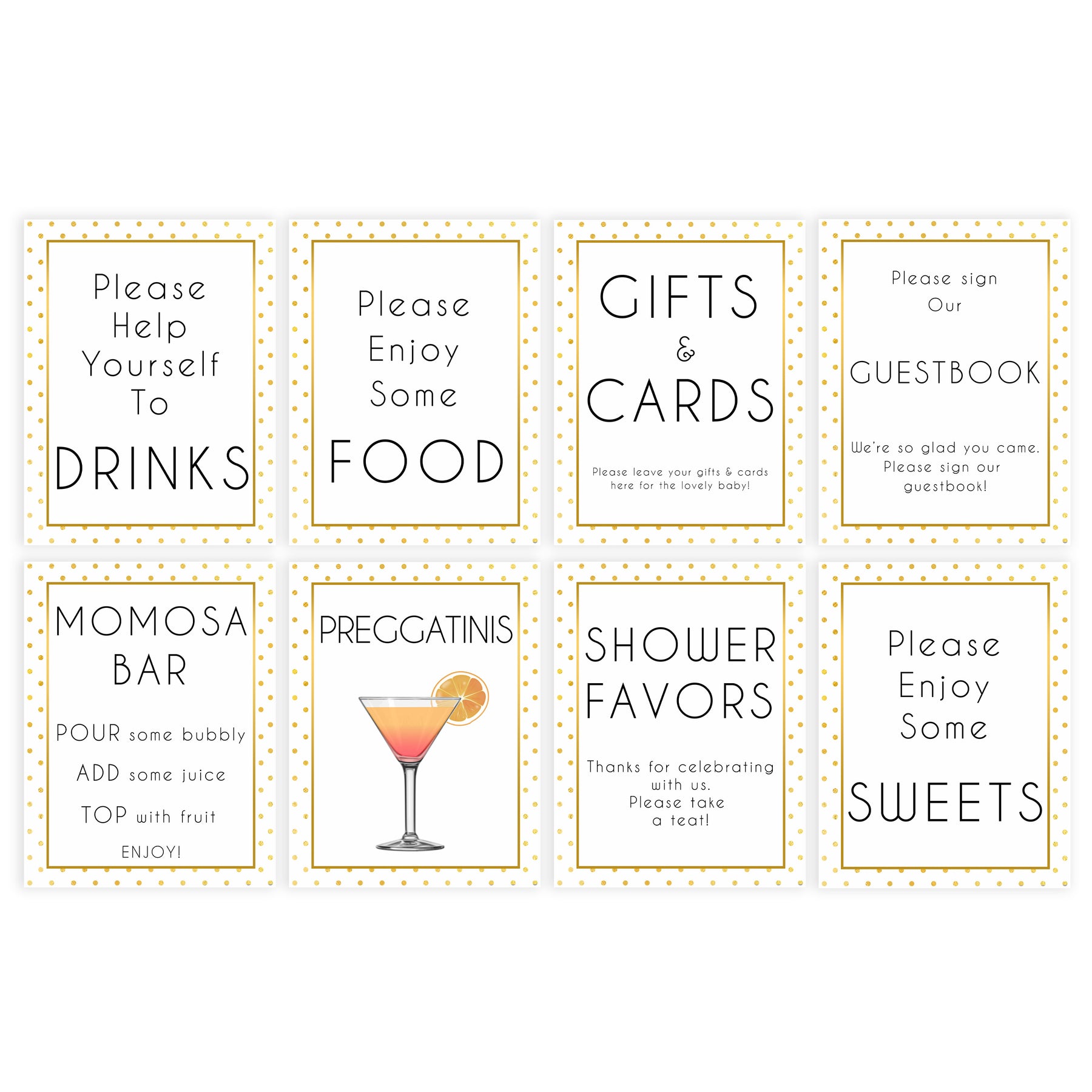 - 2x Preggatinis Sign (8.5" by 11") & (5" by 7" - 2 per page)