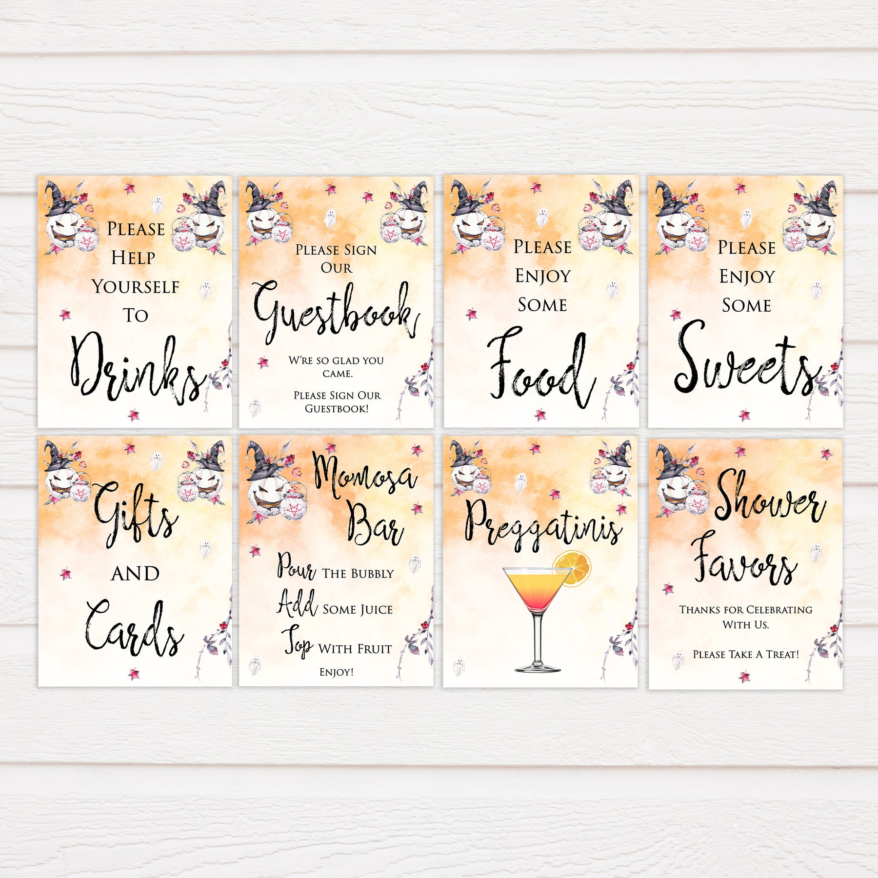 halloween baby shower table signs, printable baby shower table signs, baby shower signs, table signs, halloween baby shower
