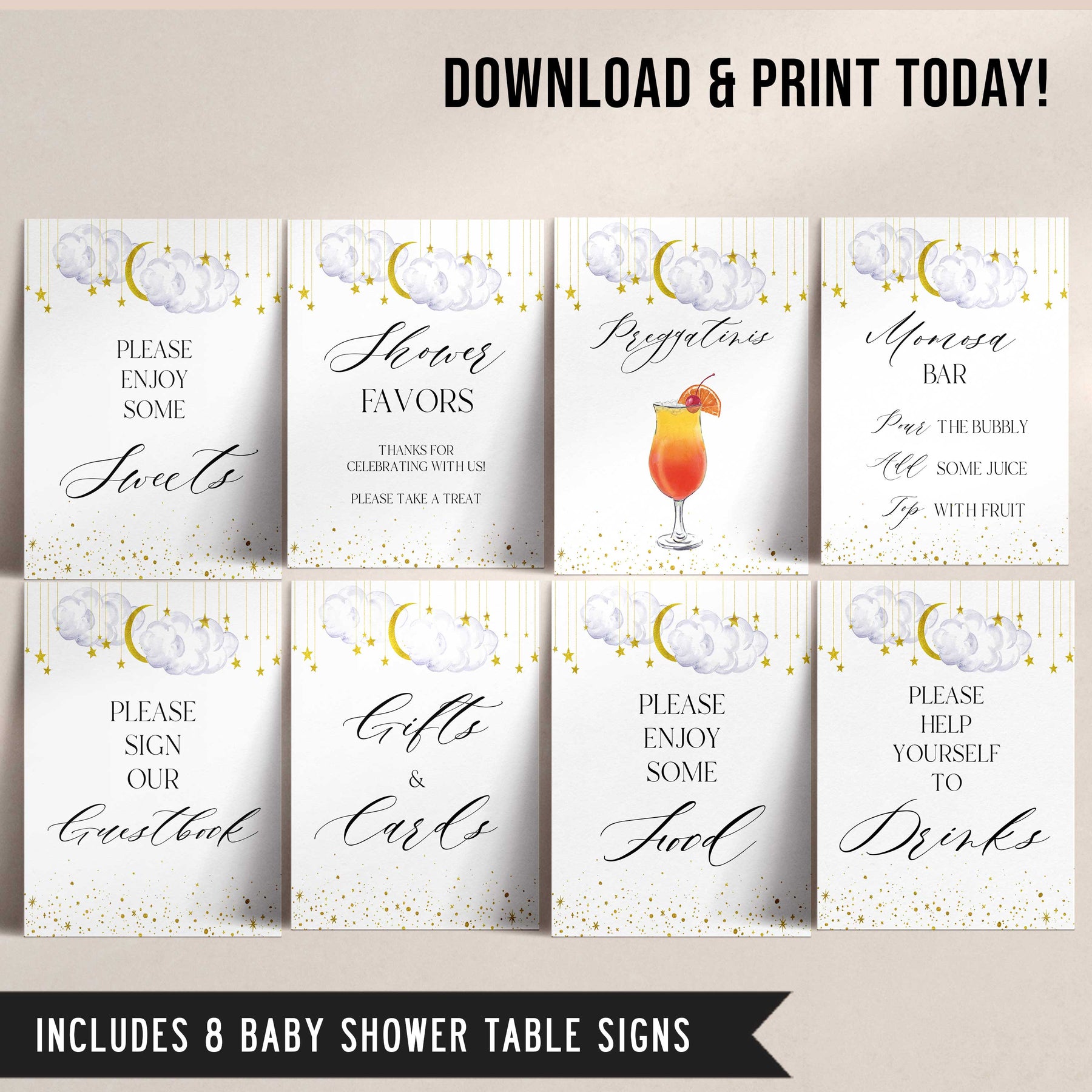 Fully editable and printable baby shower 8 table sign with a twinkle little star design. Perfect for a twinkle little star baby shower themed party