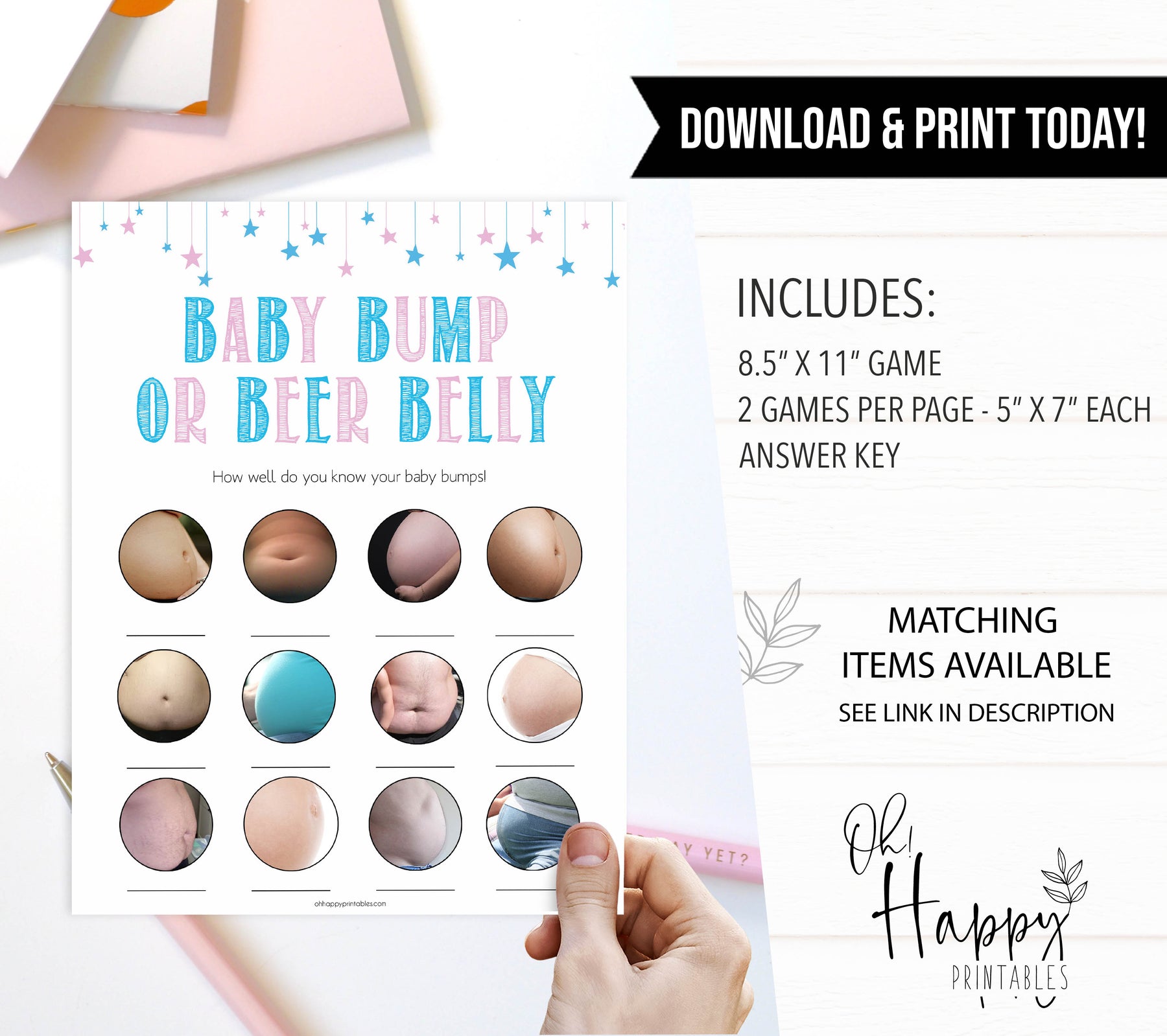 Gender reveal baby games, baby bump or beer belly baby game, gender reveal shower, fun baby games, gender reveal ideas, popular baby games, best baby games, printable baby games, gender reveal baby games