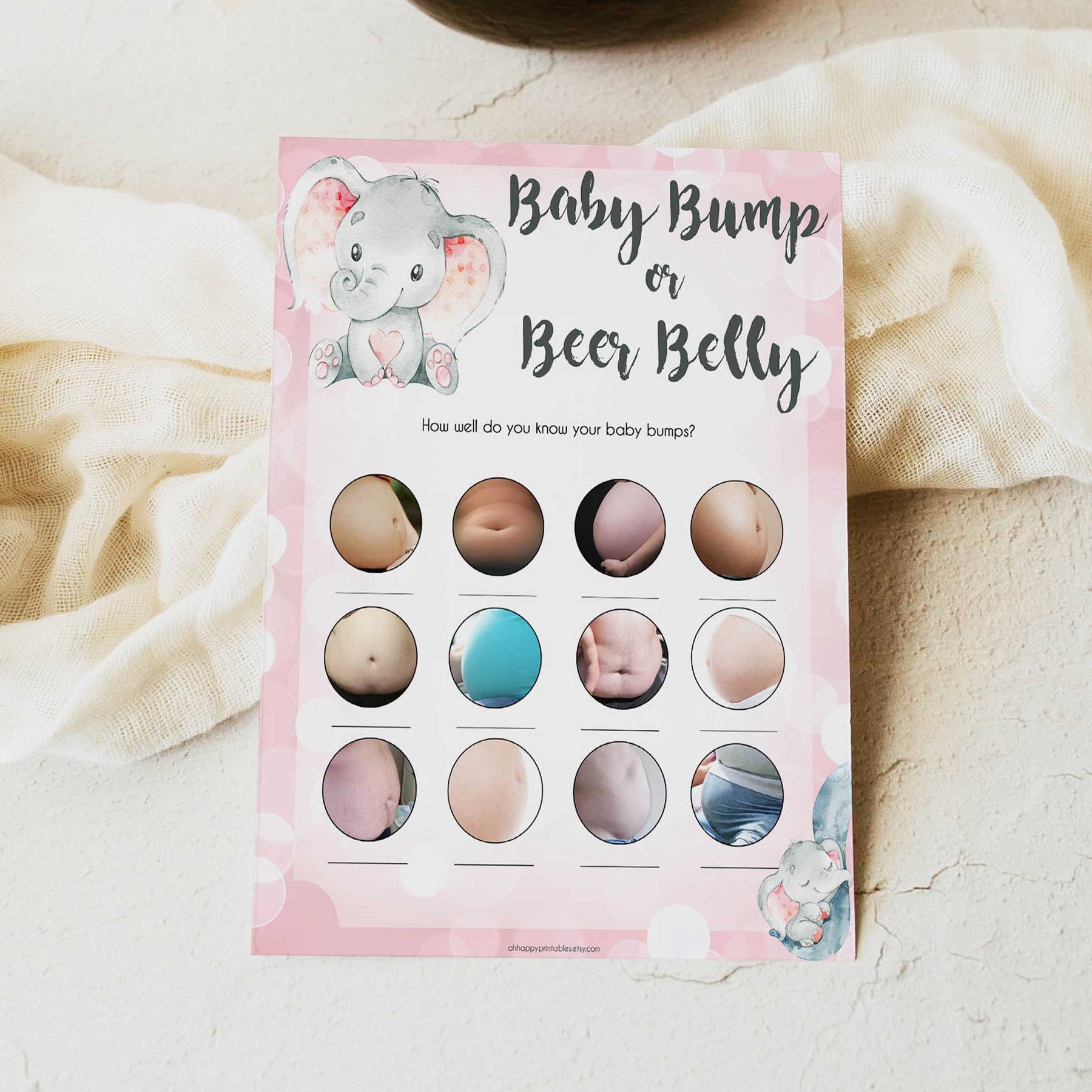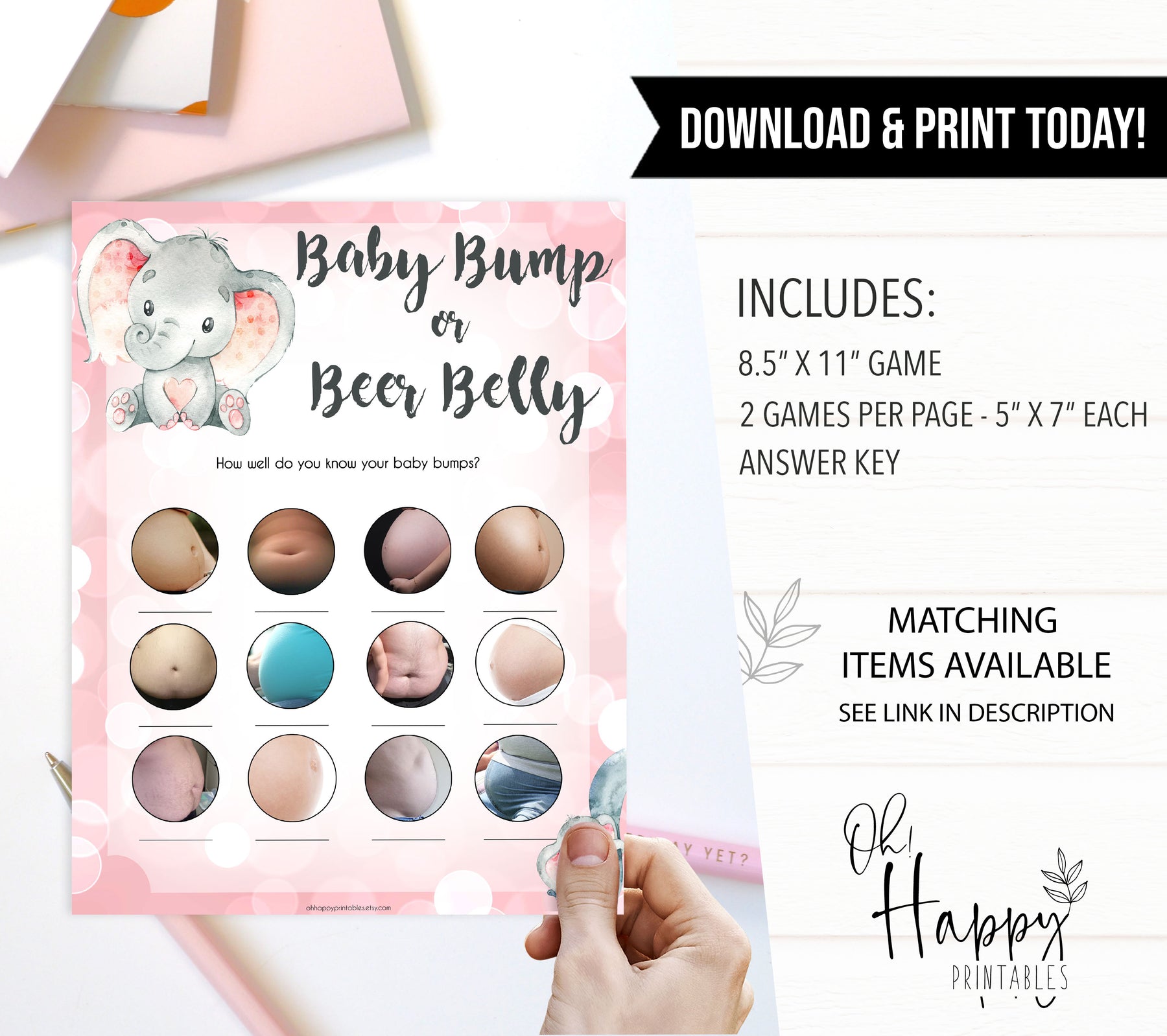 pink elephant baby games, baby bump or beer belly baby shower games, printable baby shower games, baby shower games, fun baby games, popular baby games, pink baby games