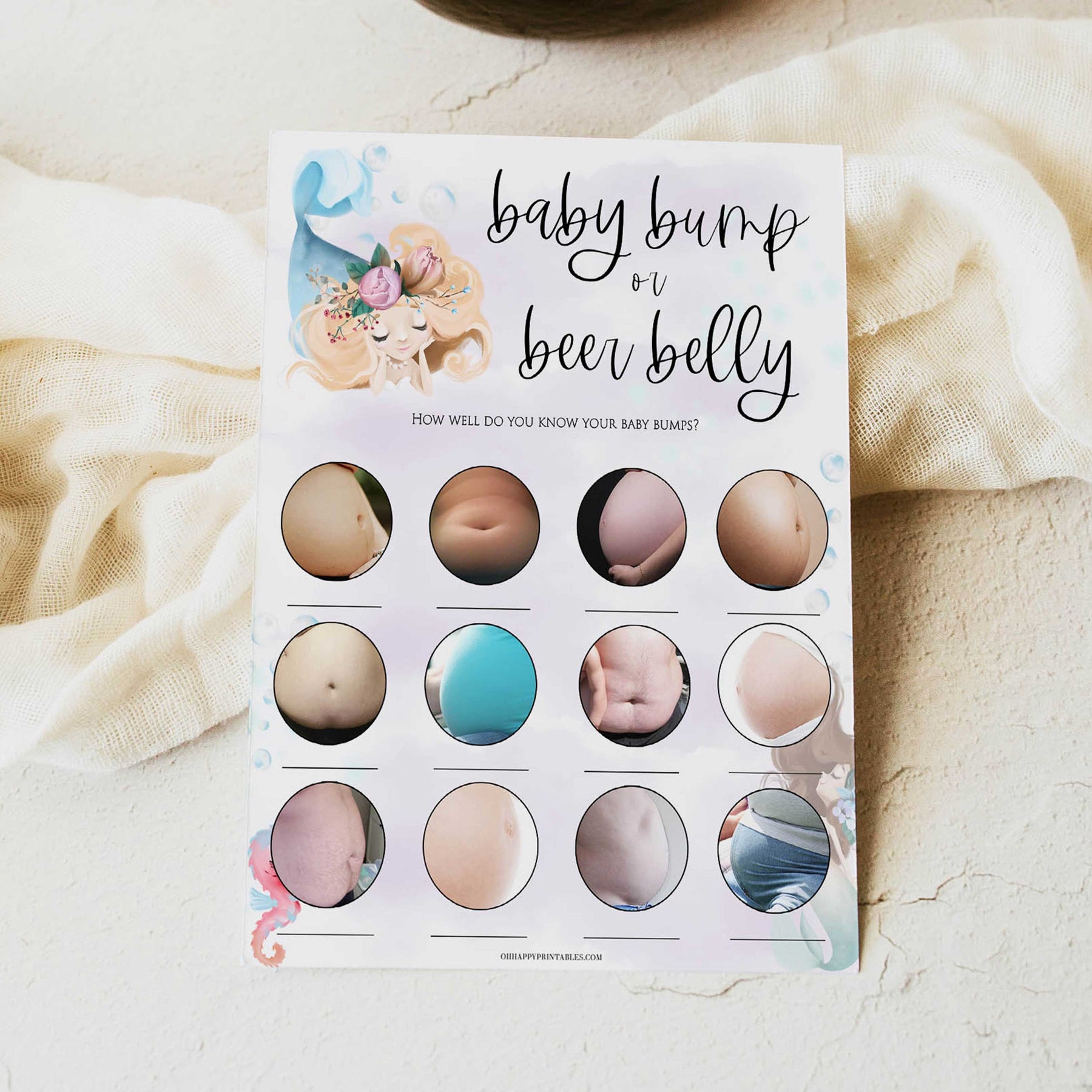 Our printable Baby Bump or Beer Belly game is a hilarious baby shower game that's perfect for those who like to have a bit of fun! Guess whether the picture is of baby bump, or a belly full of beer! Our Baby Bump or Beer Belly game comes complete with answer sheet, and is available in two sizes. All you need to do is download and print at home, it couldn't be easier.