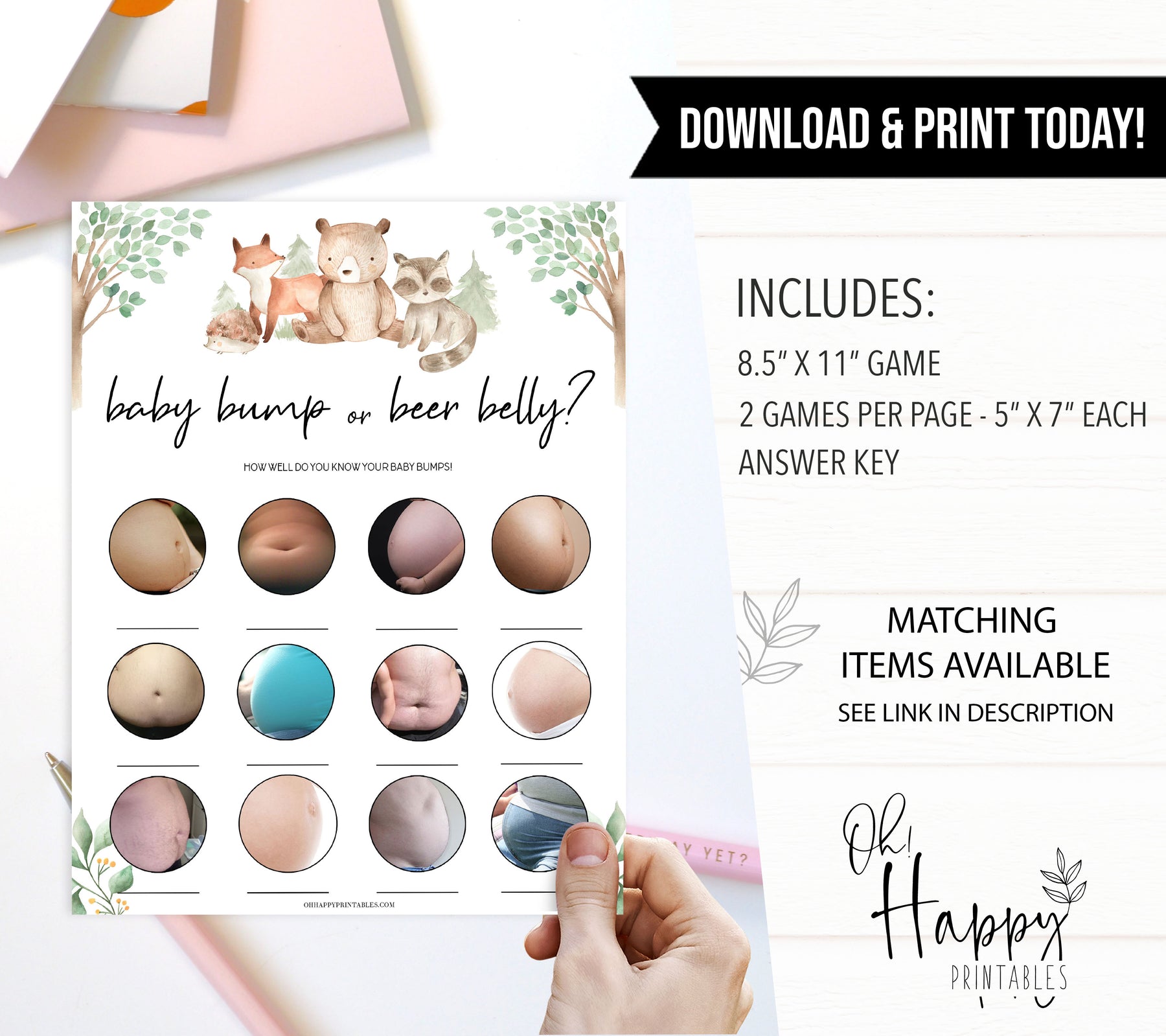 baby bump or beer belly games, Printable baby shower games, woodland animals baby games, baby shower games, fun baby shower ideas, top baby shower ideas, woodland baby shower, baby shower games, fun woodland animals baby shower ideas