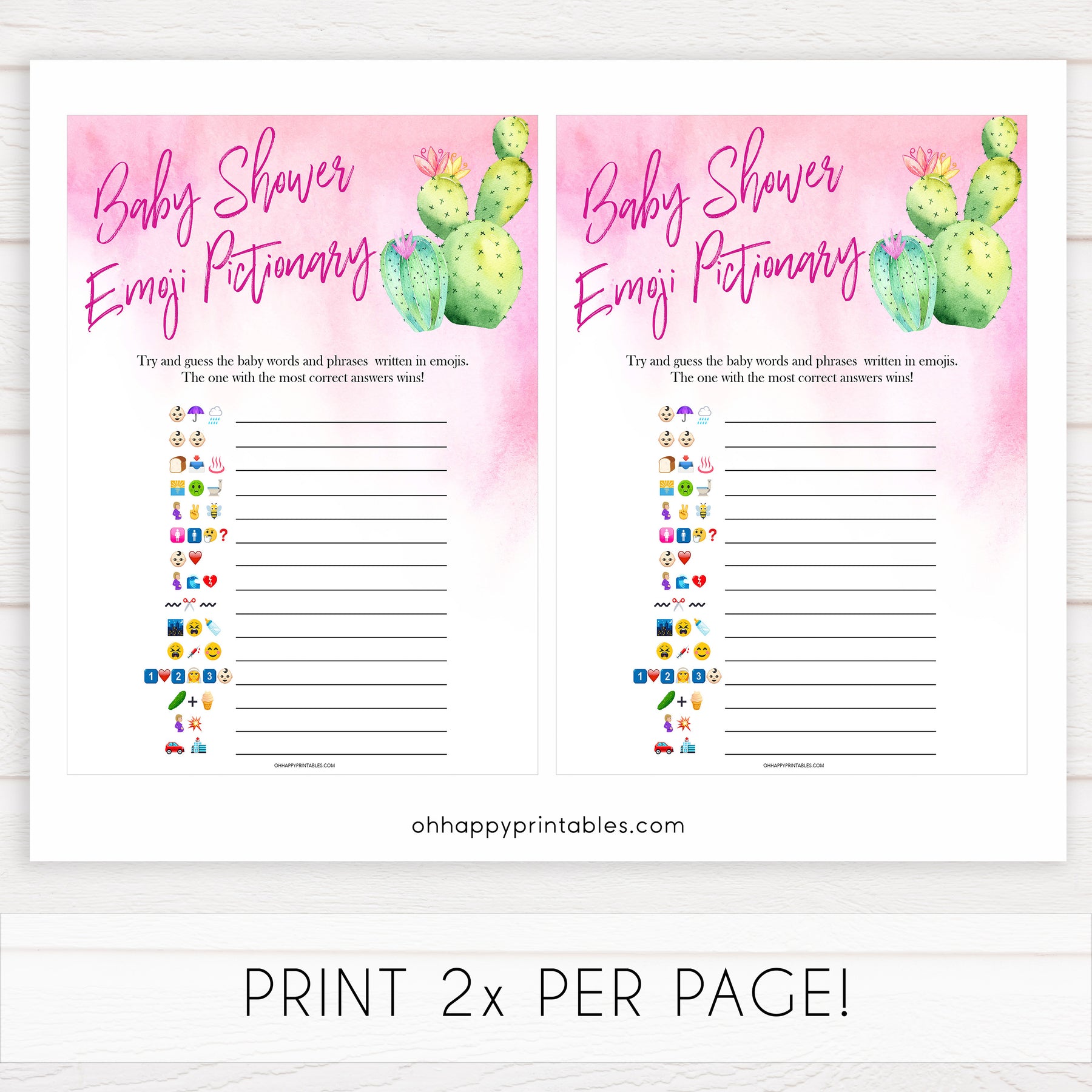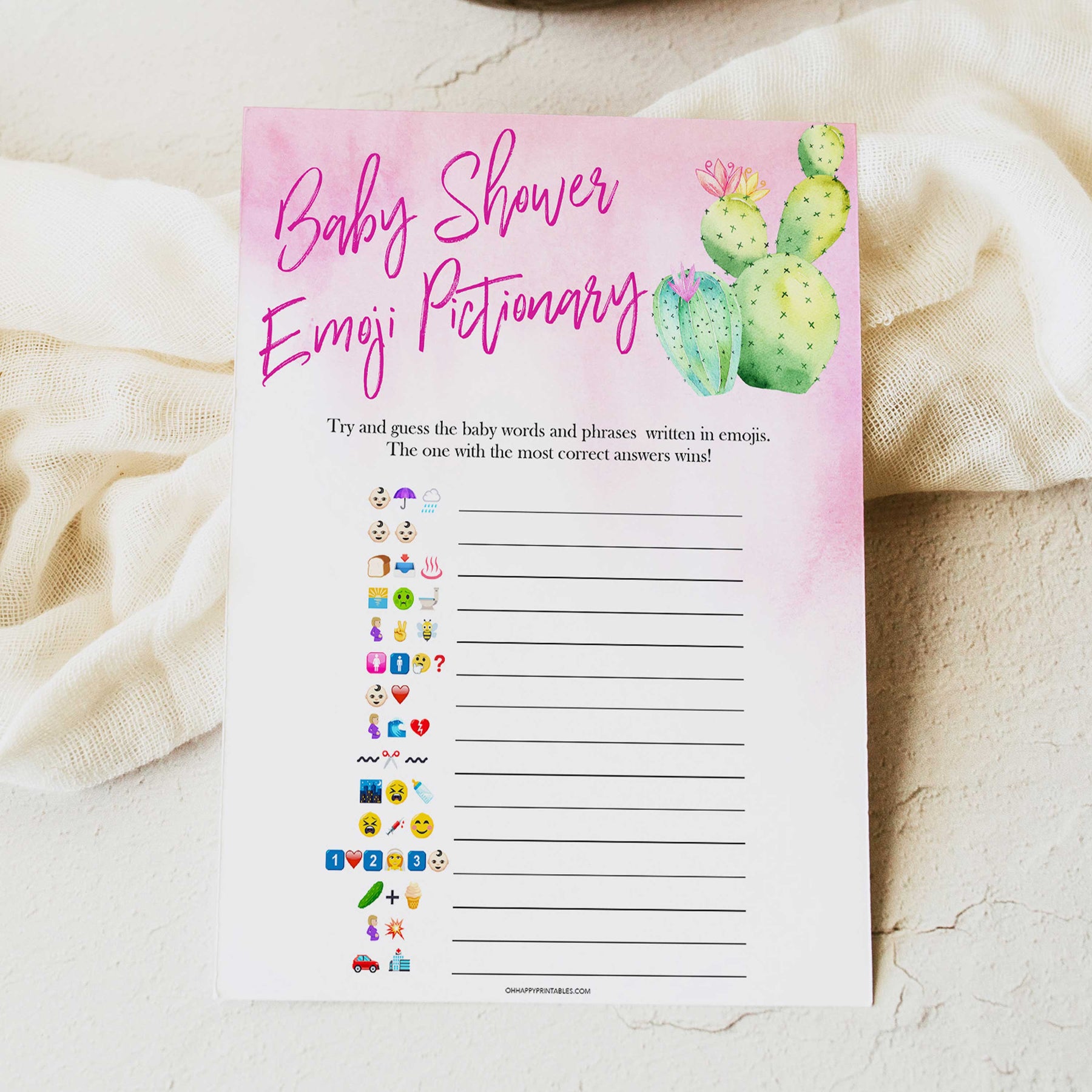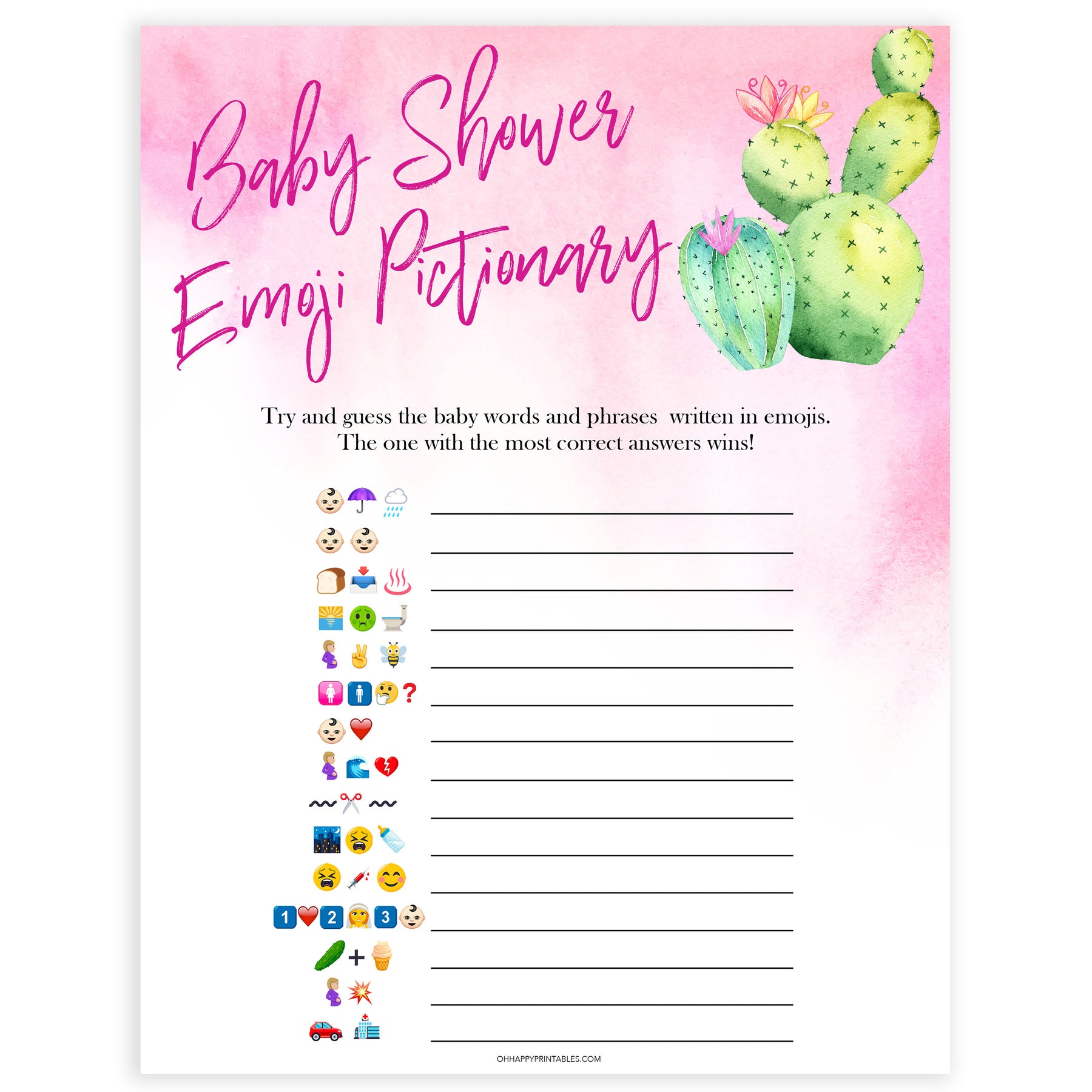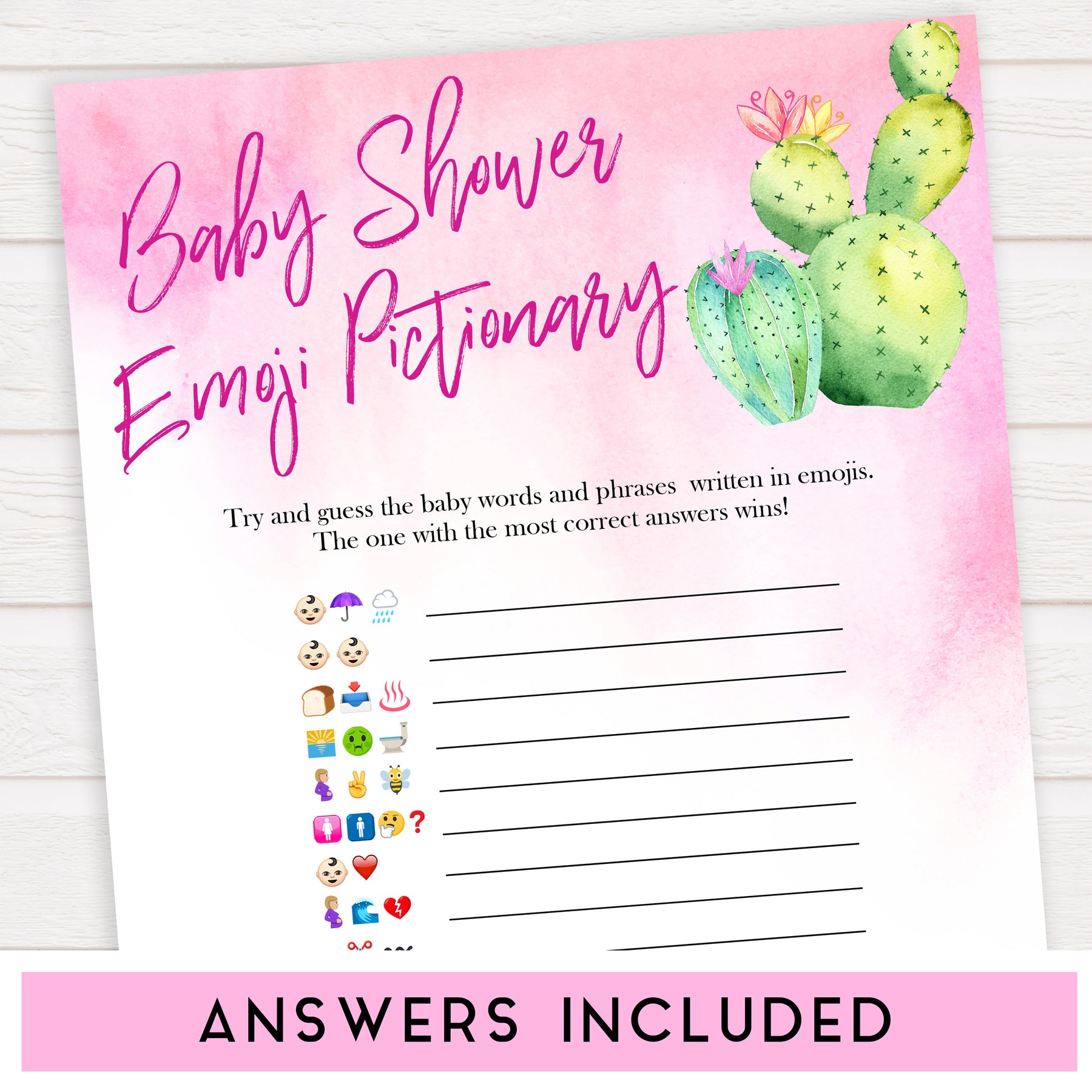 Cactus baby shower games, cactus emoji pictionary baby game, printable baby games, Mexican baby shower, Mexican baby games, fiesta baby games, popular baby games, printable baby games