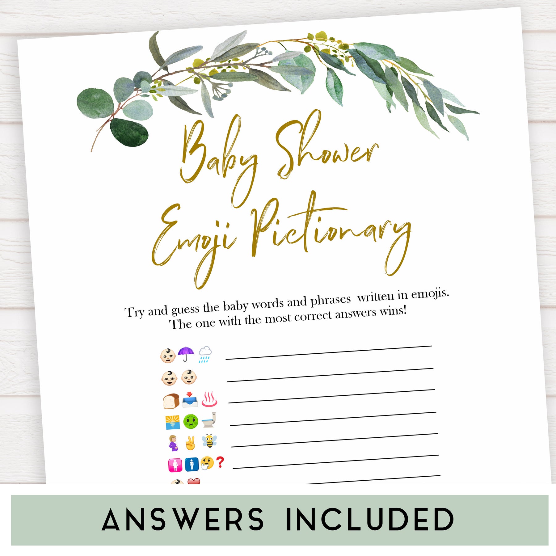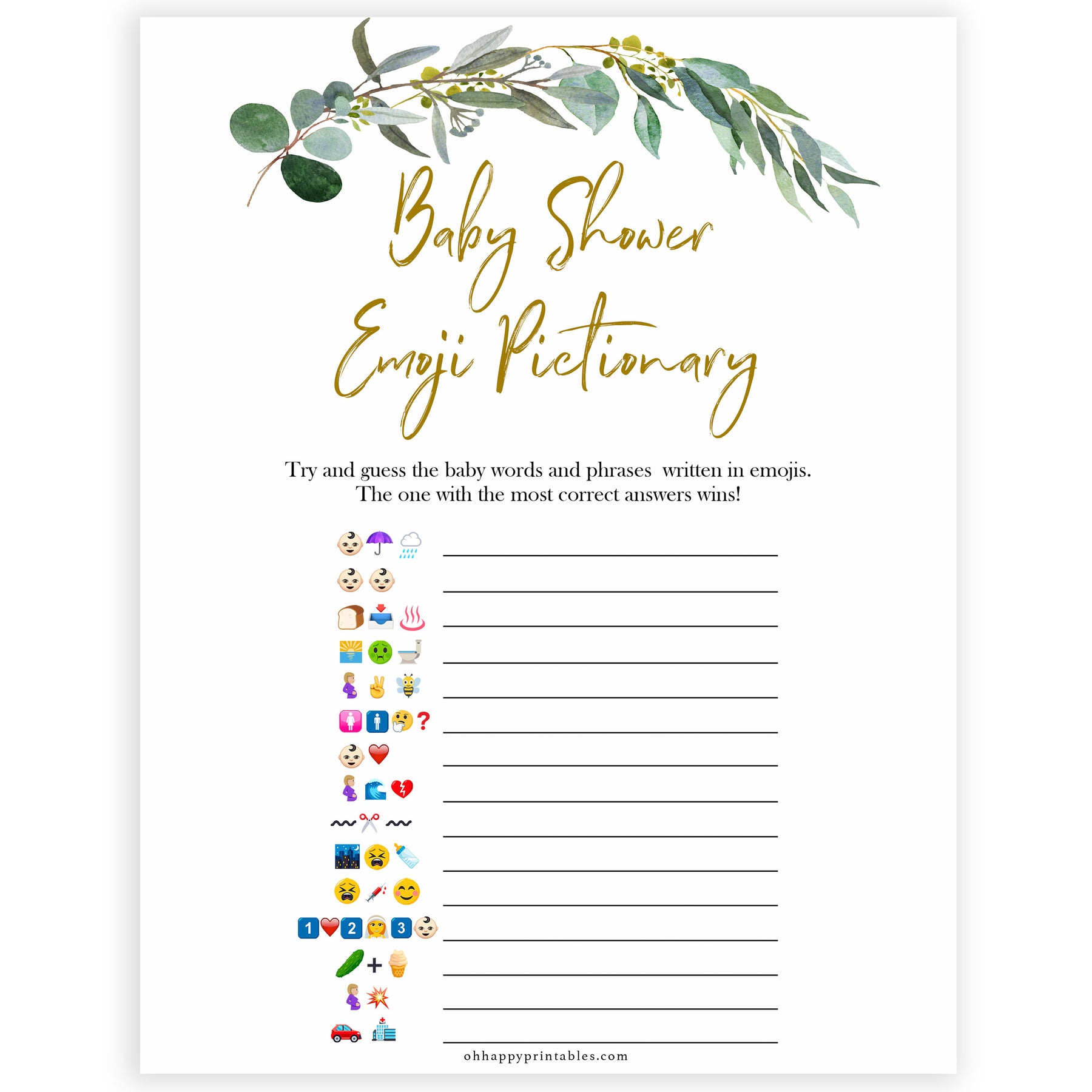 Eucalyptus baby shower games, emoji pictionary baby game, fun baby shower games, printable baby games, baby shower ideas, baby games, baby shower baby shower bundle, baby shower games packs, botanical baby shower