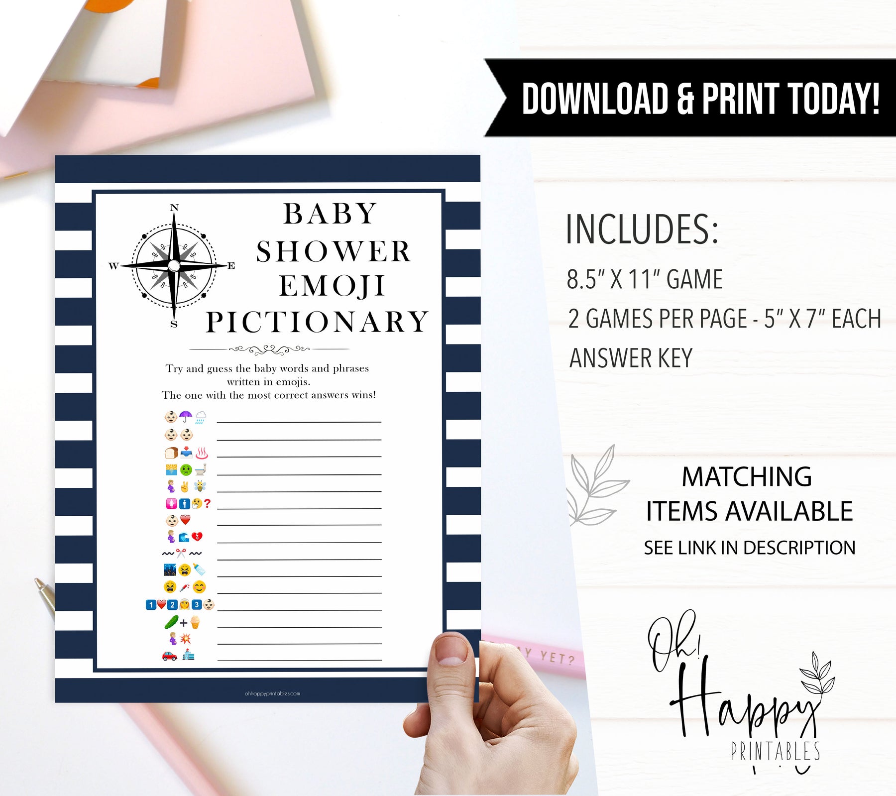 Nautical baby shower games, emoji pictionary baby shower games, printable baby shower games, baby shower games, fun baby games, ahoy its a boy, popular baby shower games, sailor baby games, boat baby games