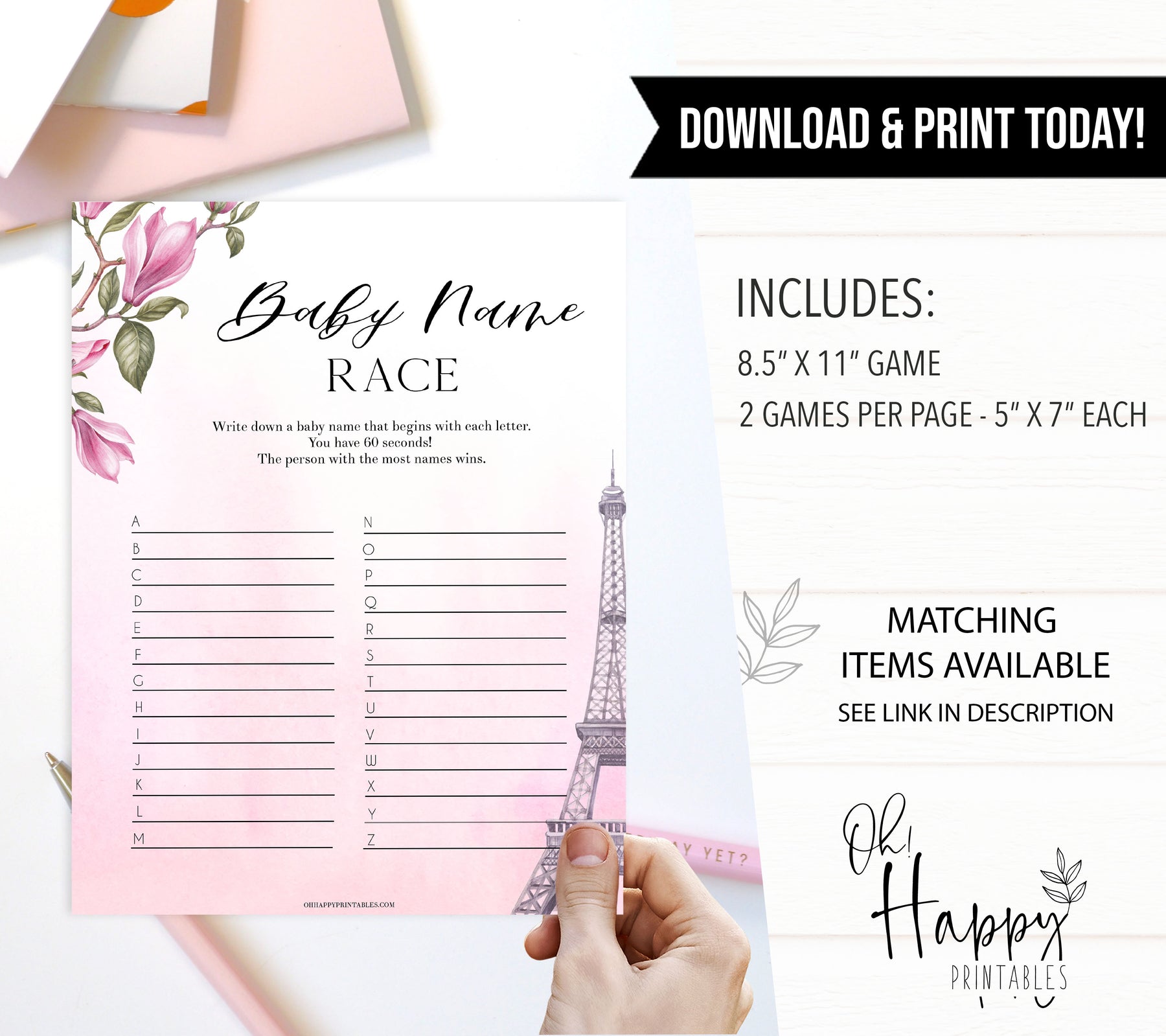 A fun game for your baby shower, see who can name the most baby names the fastest! It's a great ice breaker game, or one to play between food and drinks. Simply download and print as many as you need!