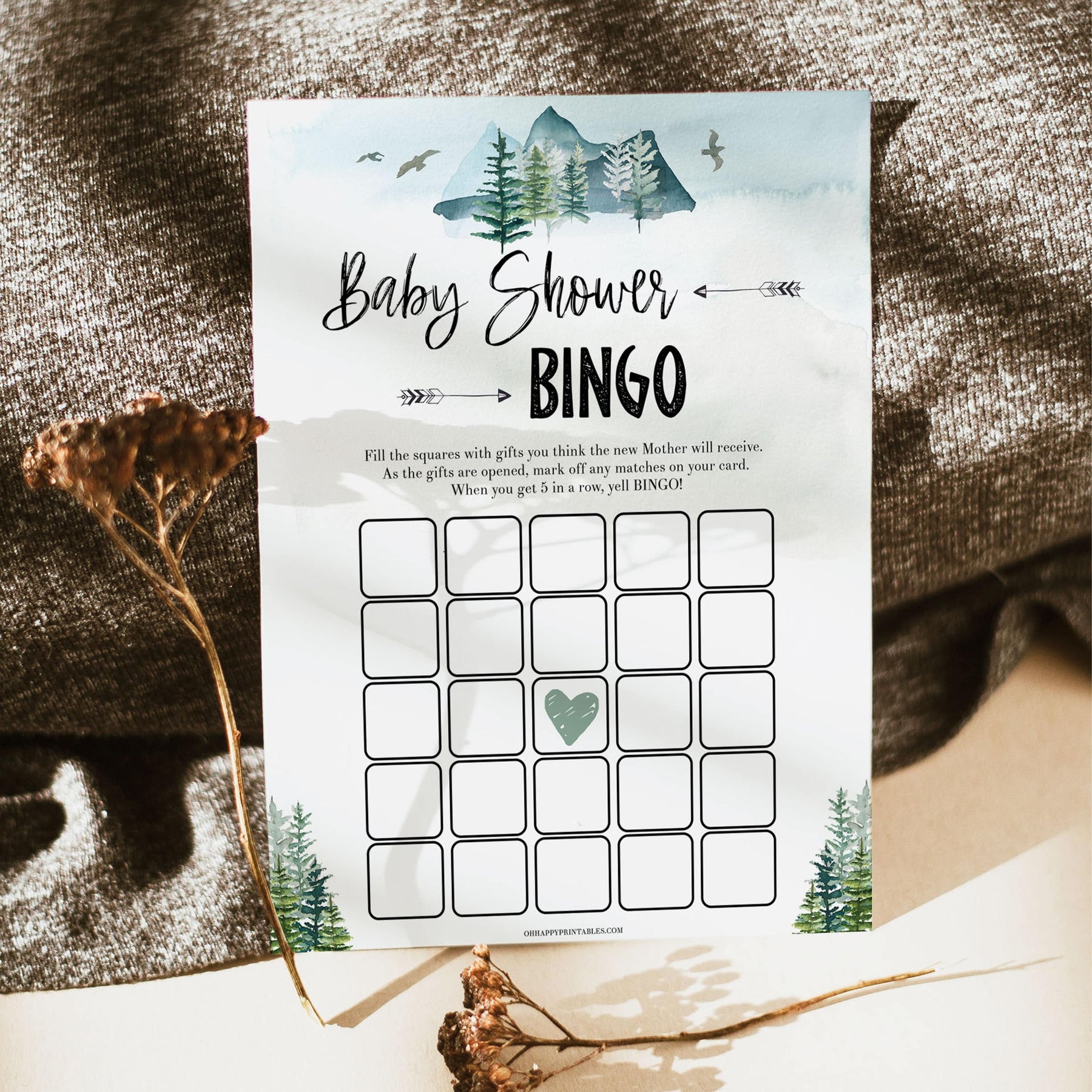 A classic game for any baby shower, Baby Bingo is a great way to get everyone involved and laughing. Fill in the bingo squares with whatever you'd like, and yell BINGO! when you get 5 in a row. Simply download and print as many as you need.