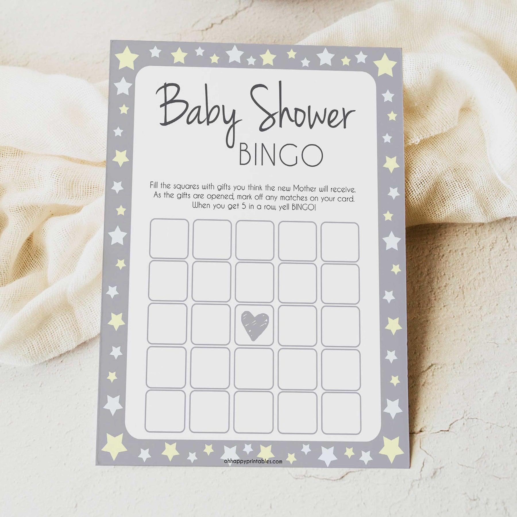 A classic game for any baby shower, Baby Bingo is a great way to get everyone involved and laughing. Fill in the bingo squares with whatever you'd like, and yell BINGO! when you get 5 in a row. Simply download and print as many as you need.