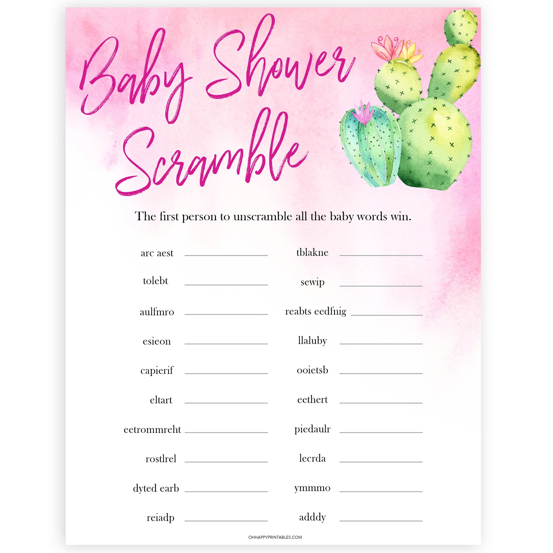 Cactus baby shower games, cactus baby scramble baby game, printable baby games, Mexican baby shower, Mexican baby games, fiesta baby games, popular baby games, printable baby games