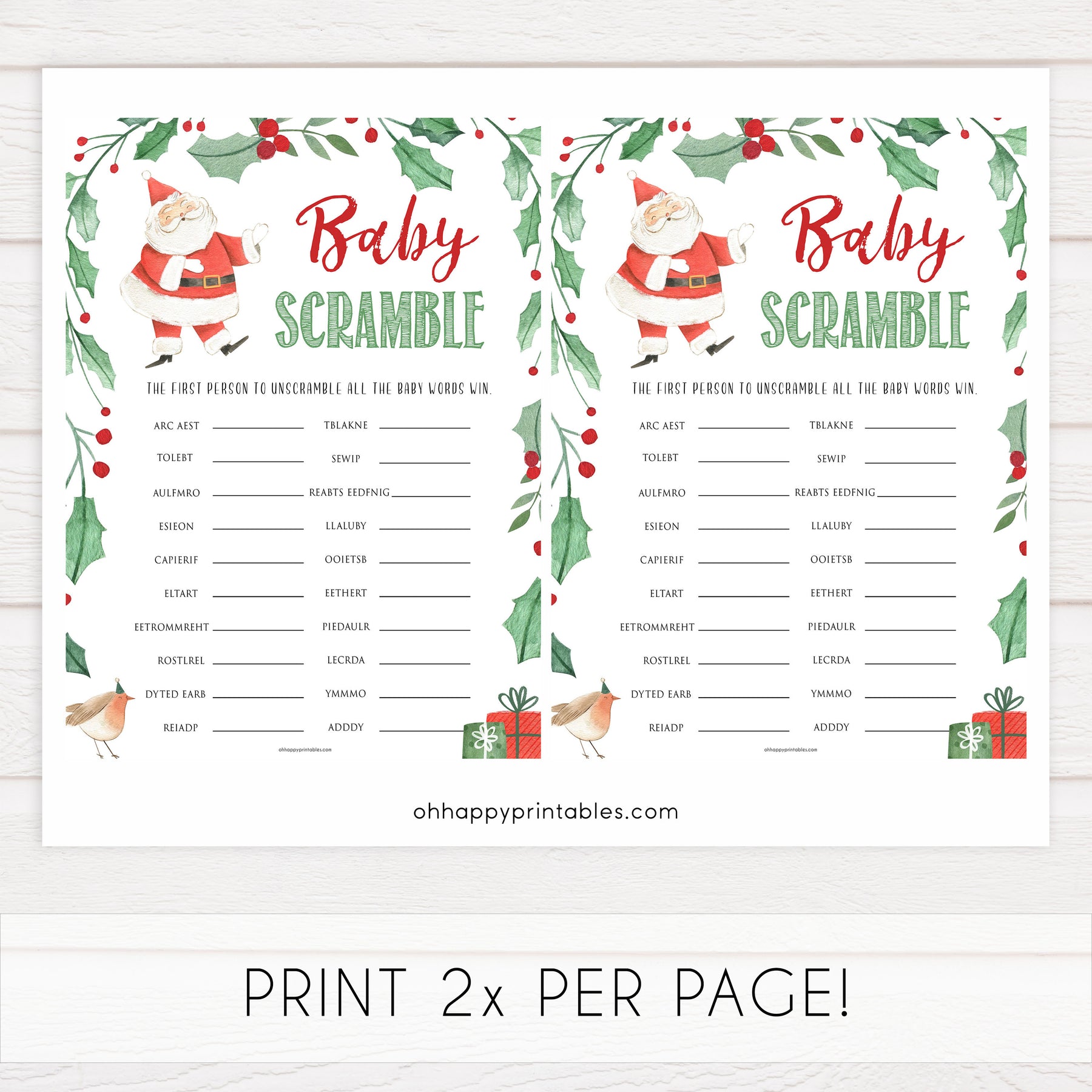 The baby word scramble game has 20 words scrambled - all the words are associated with babies and pregnancy. Get your friends to race against each other or play as a group. Download instantly and print at home for some baby shower fun.