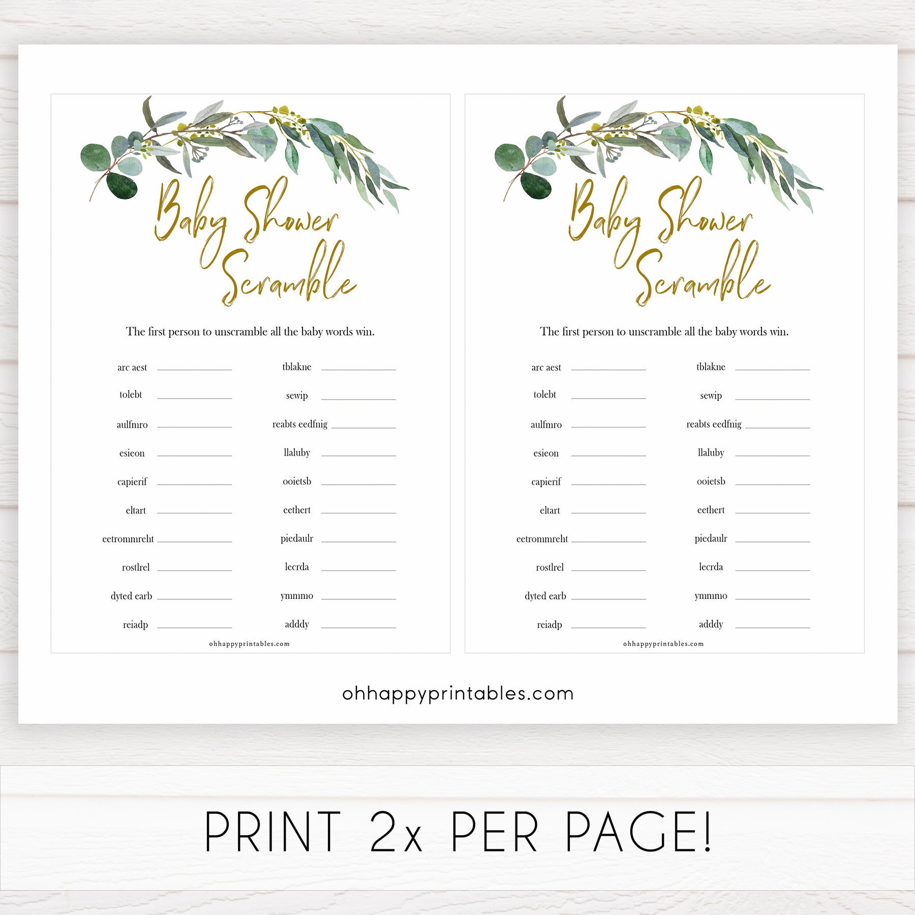 Eucalyptus baby shower games, baby scramble baby game, fun baby shower games, printable baby games, baby shower ideas, baby games, baby shower baby shower bundle, baby shower games packs, botanical baby shower
