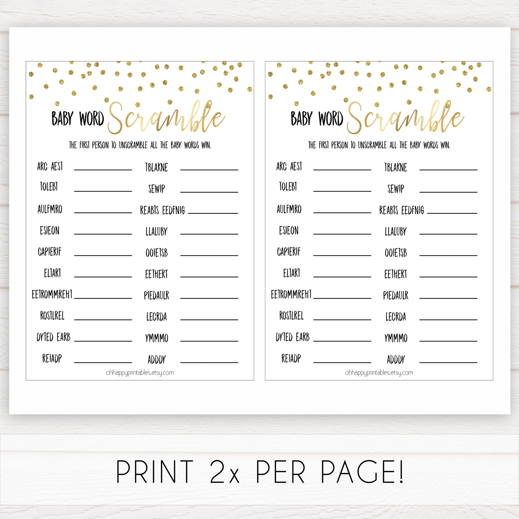 The baby word scramble game has 20 words scrambled - all the words are associated with babies and pregnancy. Get your friends to race against each other or play as a group. Download instantly and print at home for some baby shower fun.