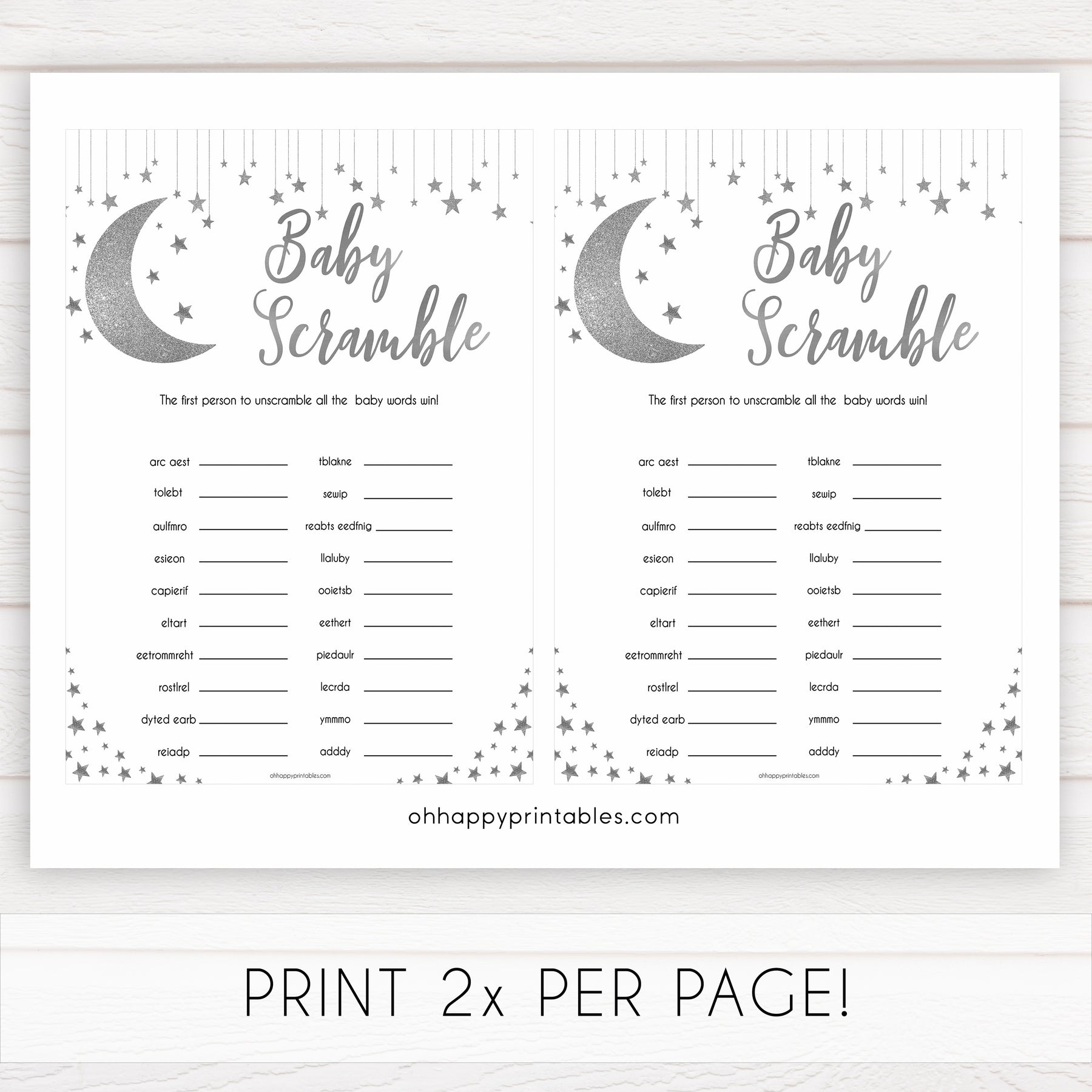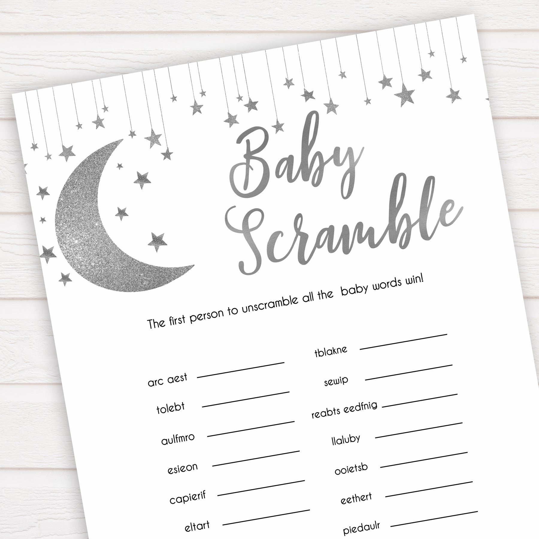 Silver little star, baby scramble baby games, baby shower games, printable baby games, fun baby games, twinkle little star games, baby games, fun baby shower ideas, baby shower ideas