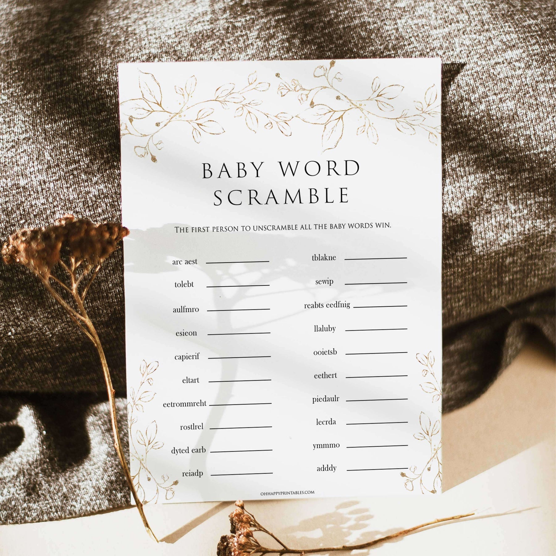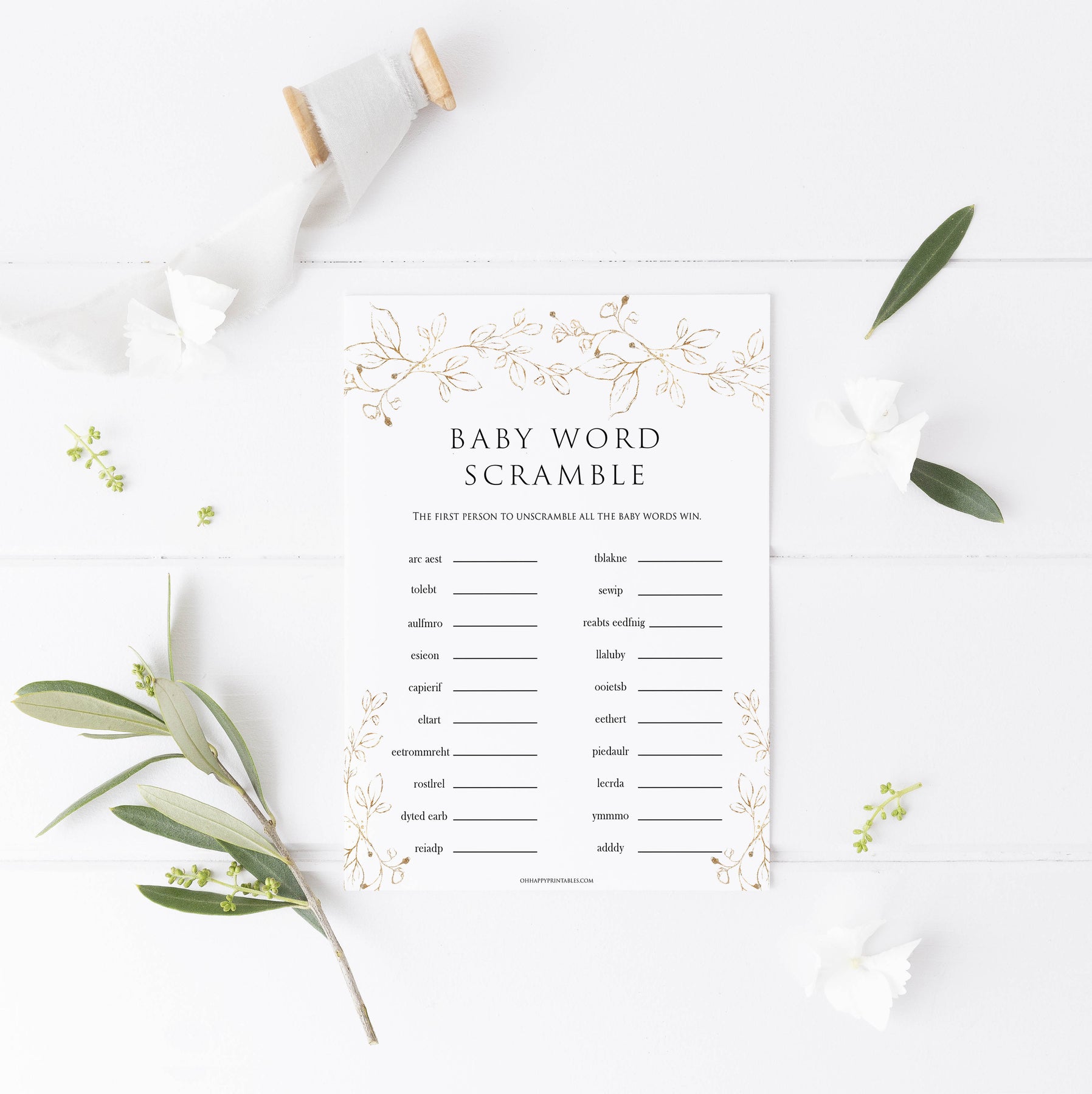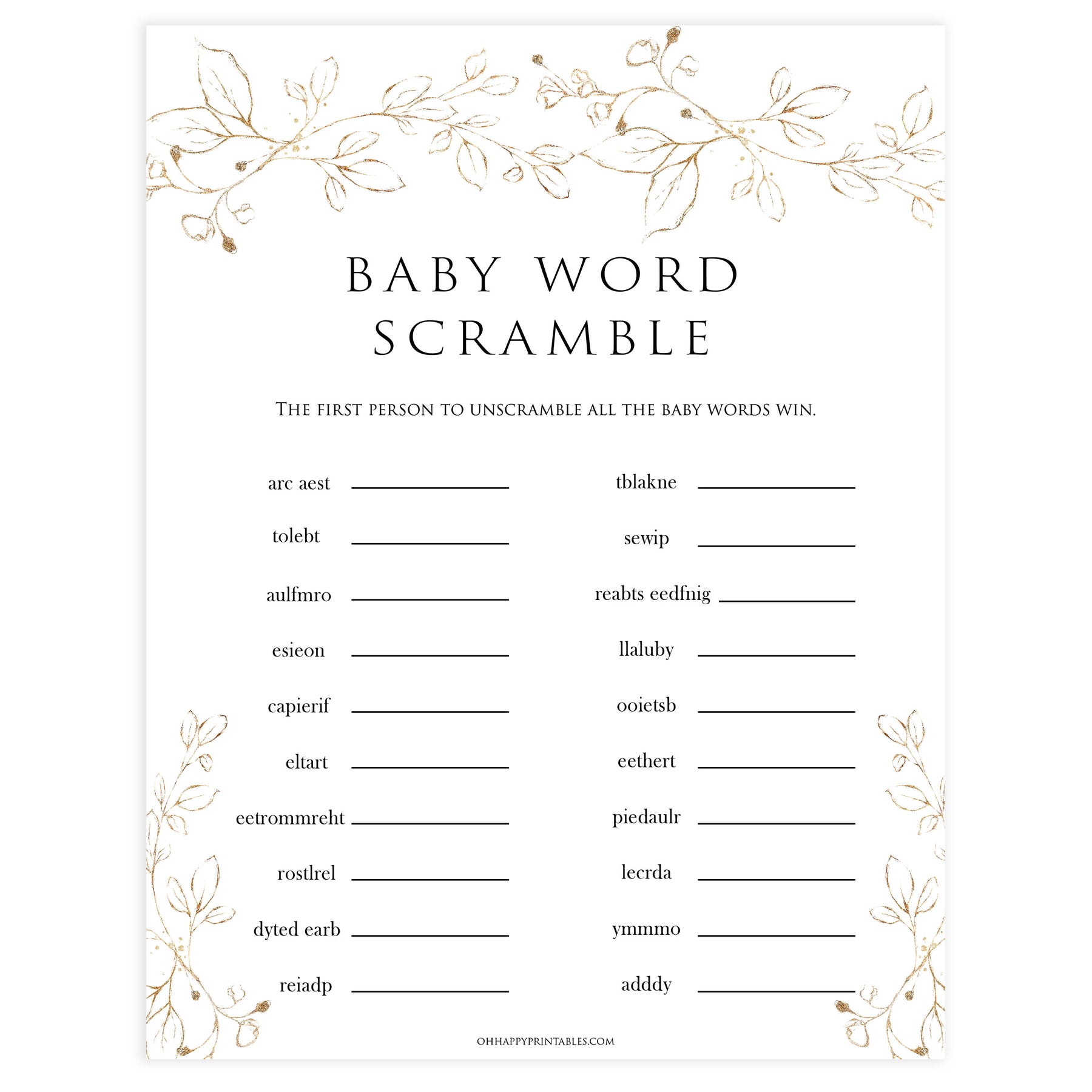 The baby word scramble game has 20 words scrambled - all the words are associated with babies and pregnancy. Get your friends to race against each other or play as a group. Download instantly and print at home for some baby shower fun.