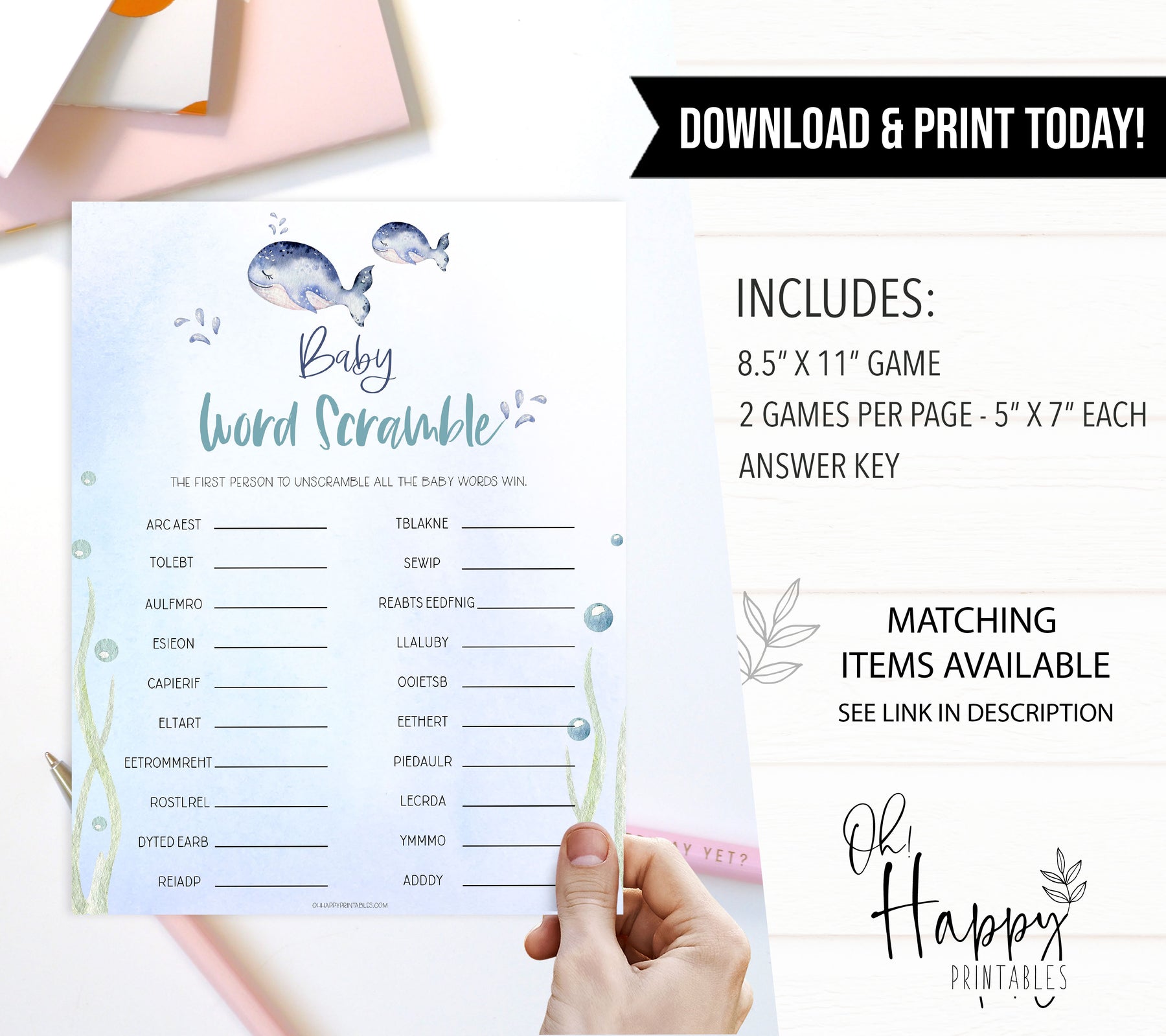 The baby word scramble game has 20 words scrambled - all the words are associated with babies and pregnancy. Get your friends to race against each other or play as a group. Download instantly and print at home for some baby shower fun.