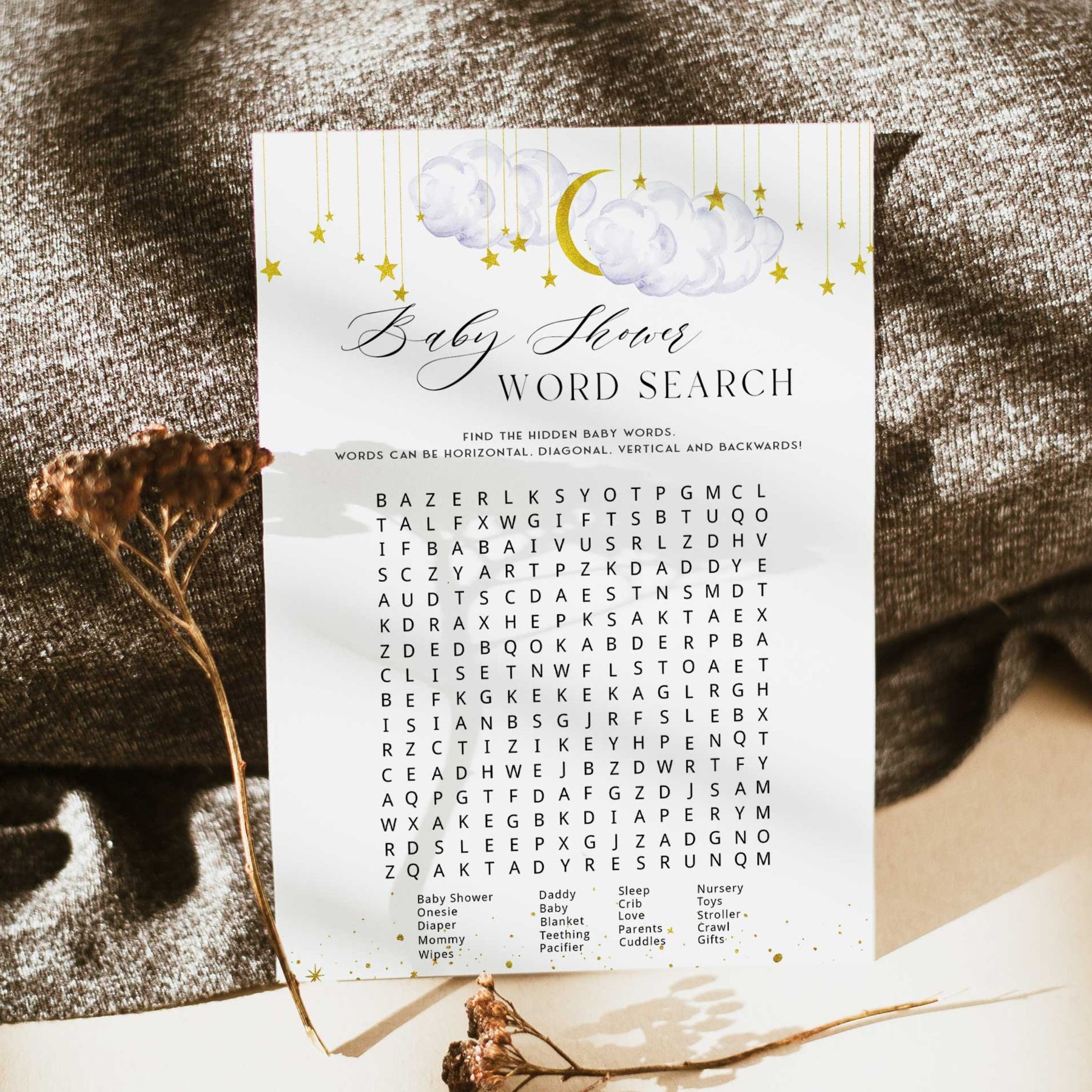 Add a little fun to your baby shower with beautiful baby word search game. Friends and family can find 20 baby related words hidden in the puzzle. Words can be forwards, backwards, horizontal or even diagonal. The one with the most correct answers wins.