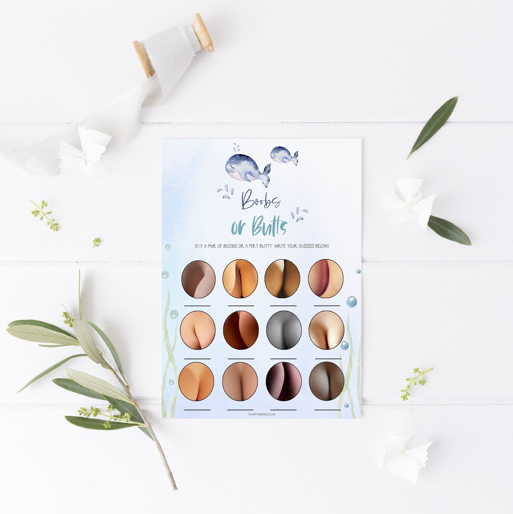 Our printable Boobs or Butts game is a hilarious baby shower game that's perfect for those who like to have a bit of fun! Guess whether the picture is a pair of womans boobs or a butt. Our printable Boobs or Butts game comes complete with answer sheet. All you need to do is download and print at home, it couldn't be easier.