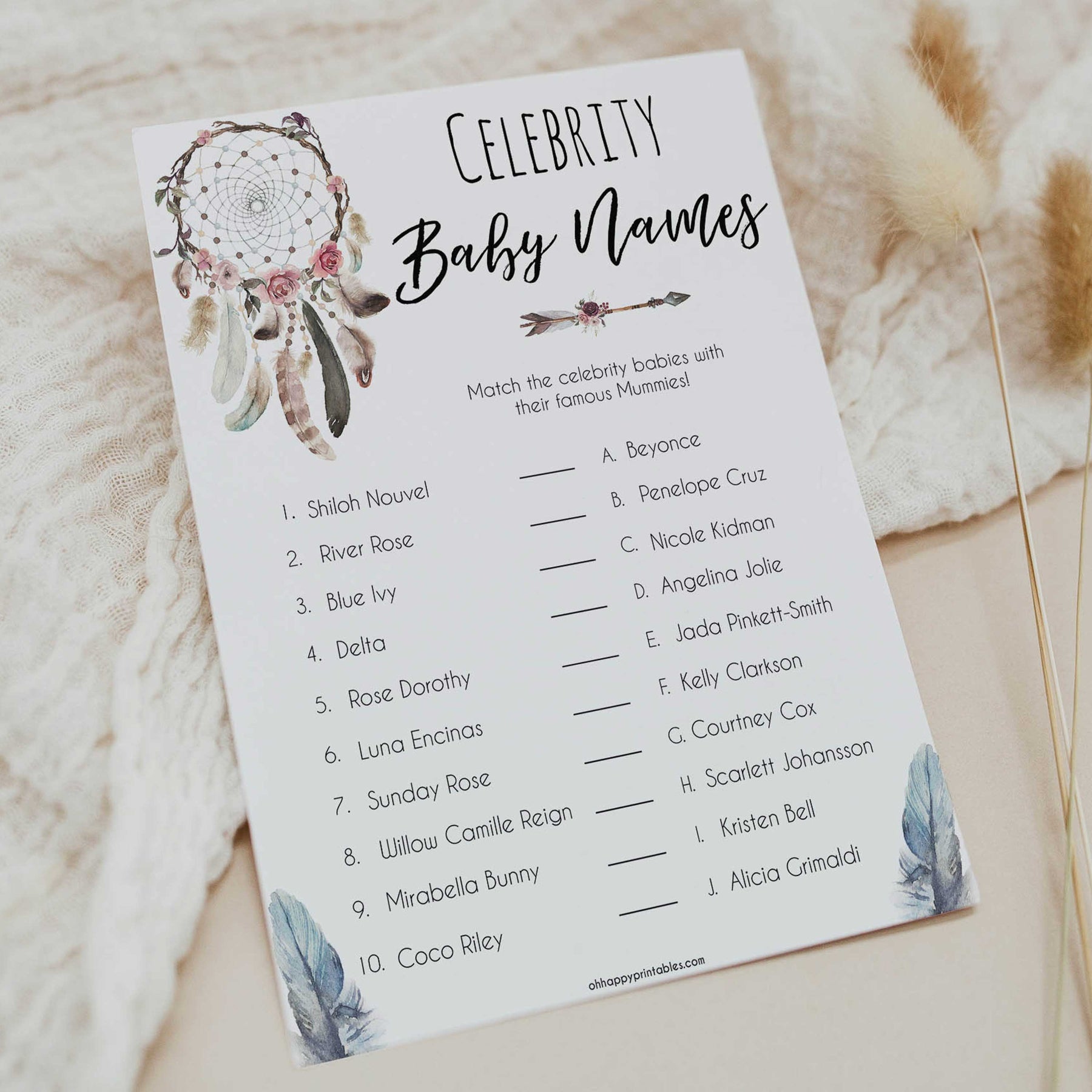 Do you know your Blue Ivy from your Coco Riley? Celebrity baby names is a game that makes sure you're keeping on top of the celeb news. A great game to play at your baby shower, simply download and print at home.