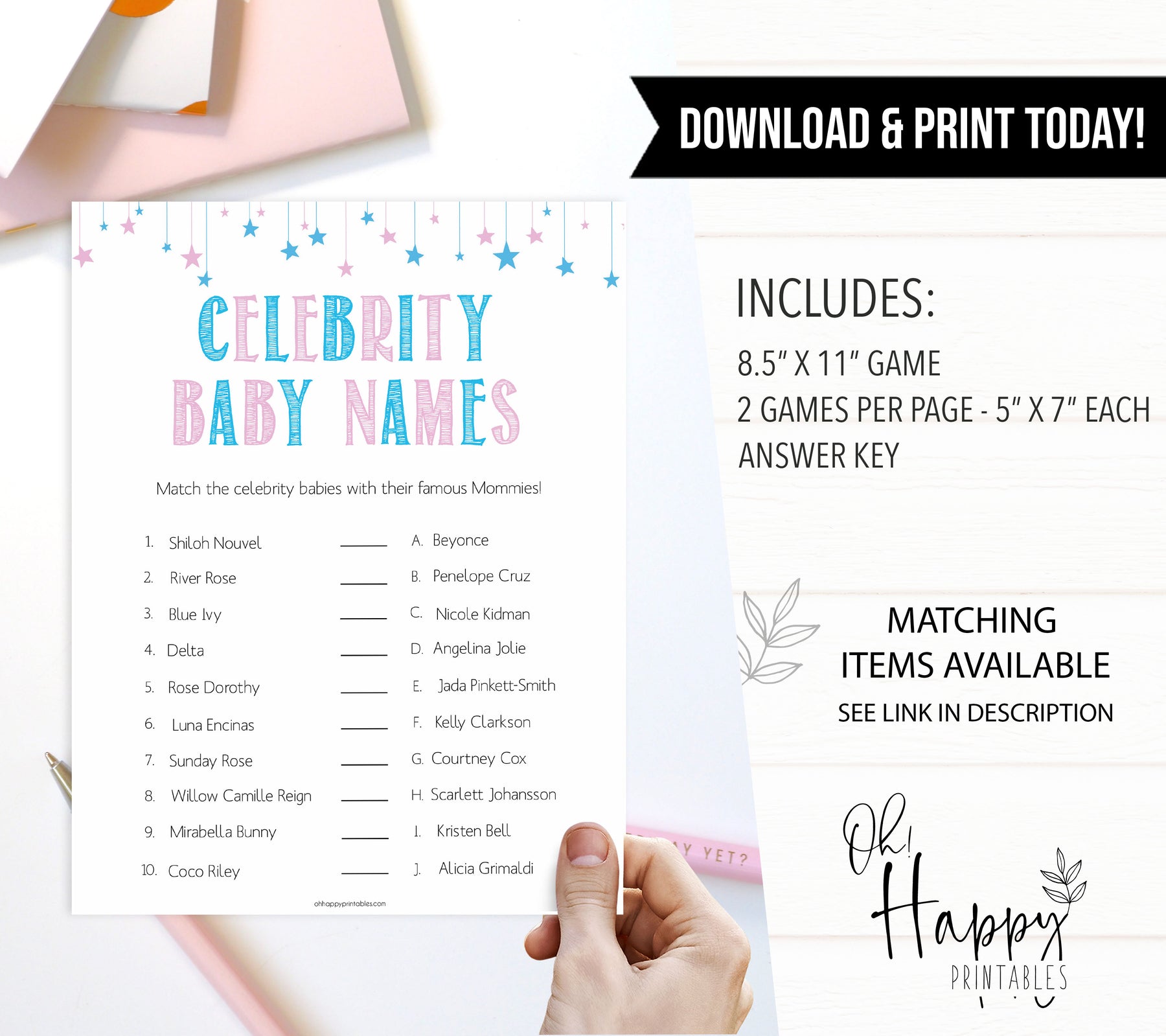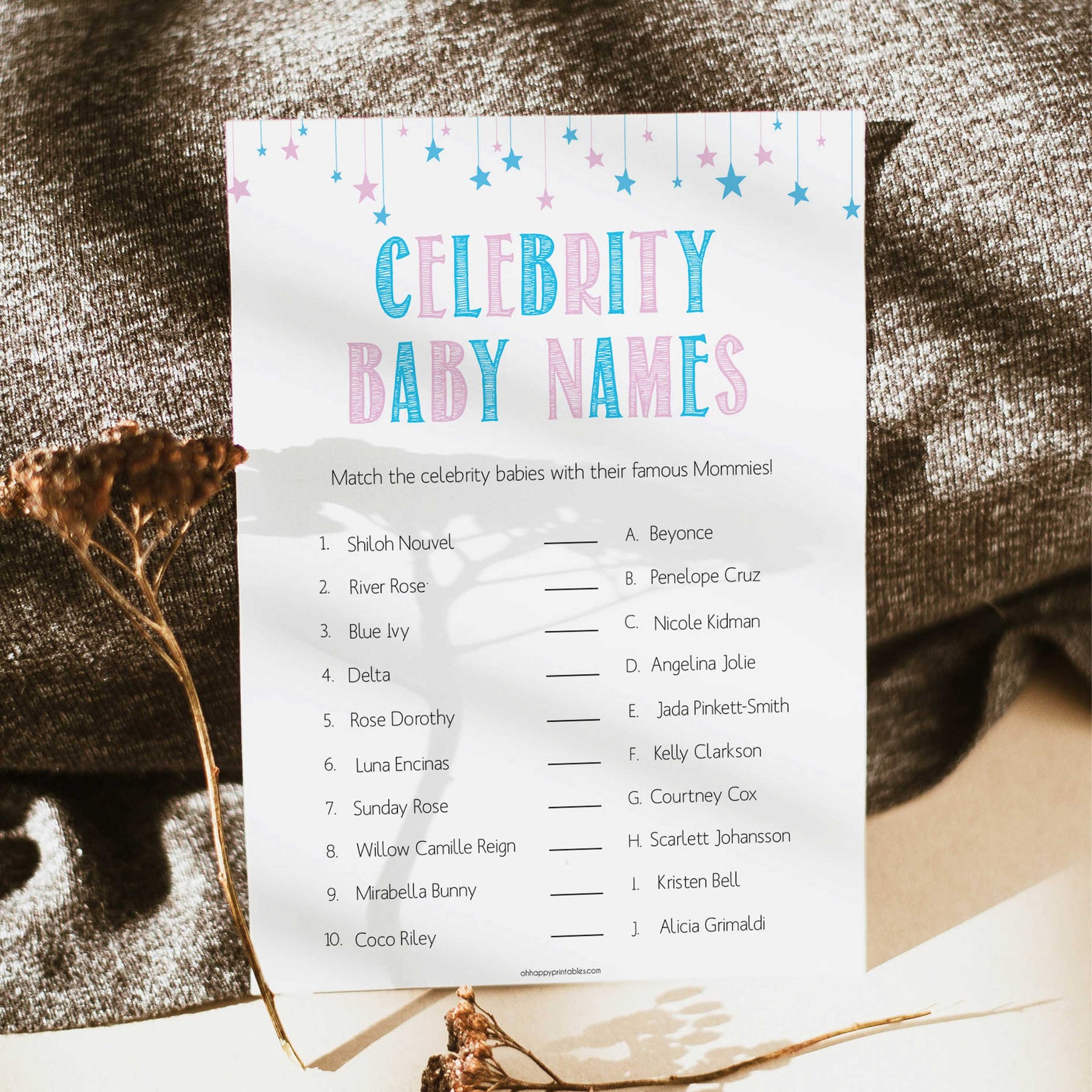 Do you know your Blue Ivy from your Coco Riley? Celebrity baby names is a game that makes sure you're keeping on top of the celeb news. A great game to play at your baby shower, simply download and print at home.