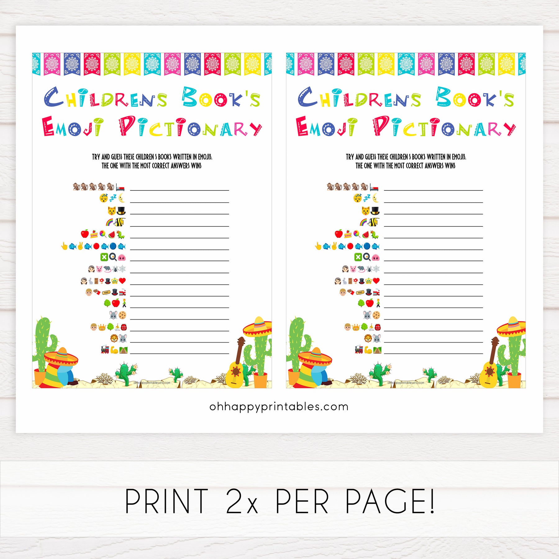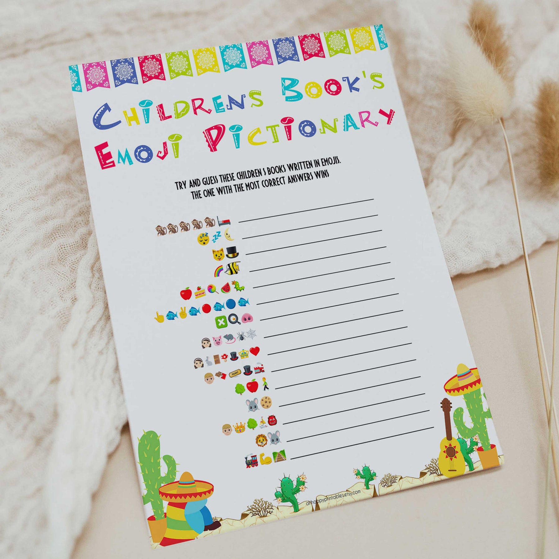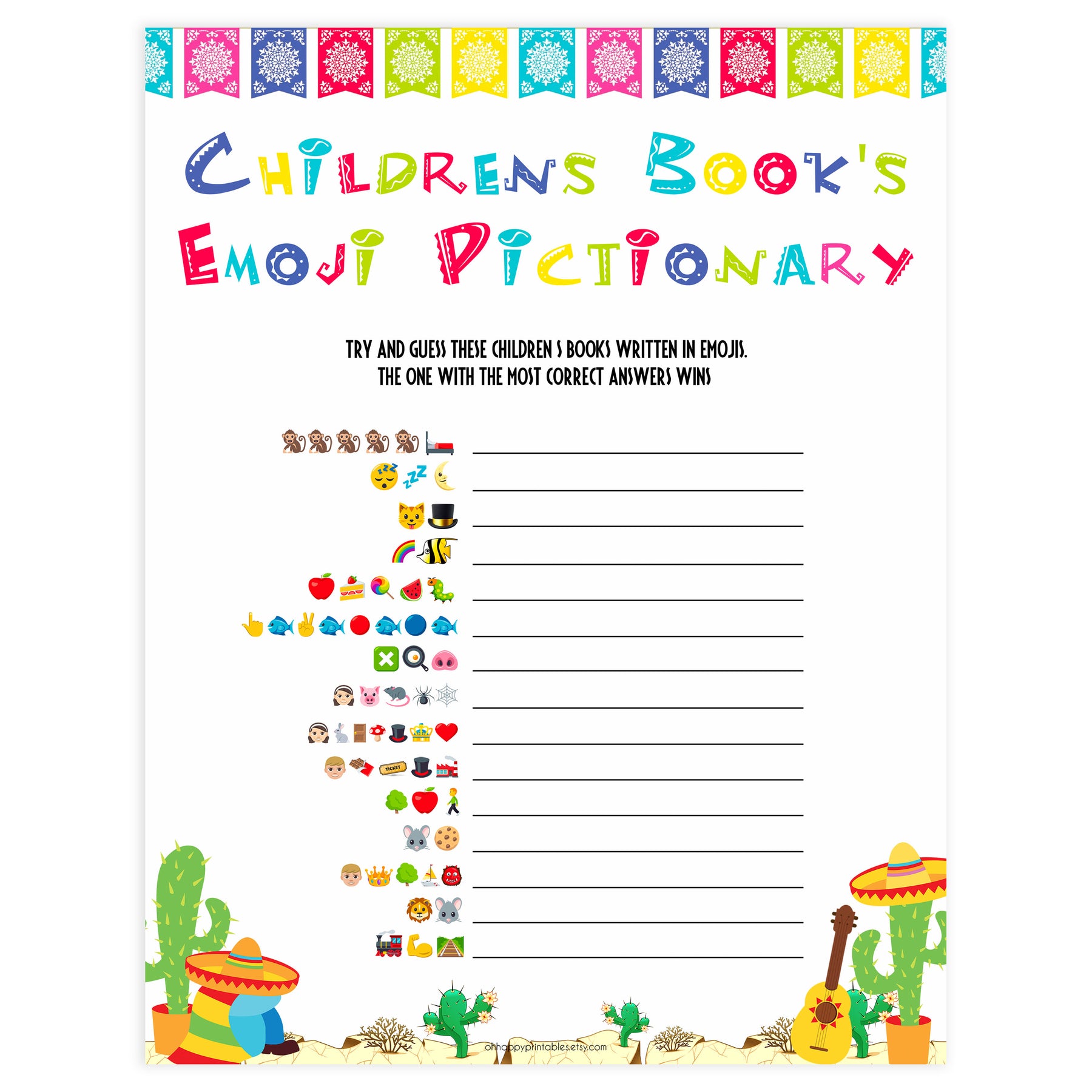 childrens books emoji pictionary game, Printable baby shower games, Mexican fiesta fun baby games, baby shower games, fun baby shower ideas, top baby shower ideas, fiesta shower baby shower, fiesta baby shower ideas
