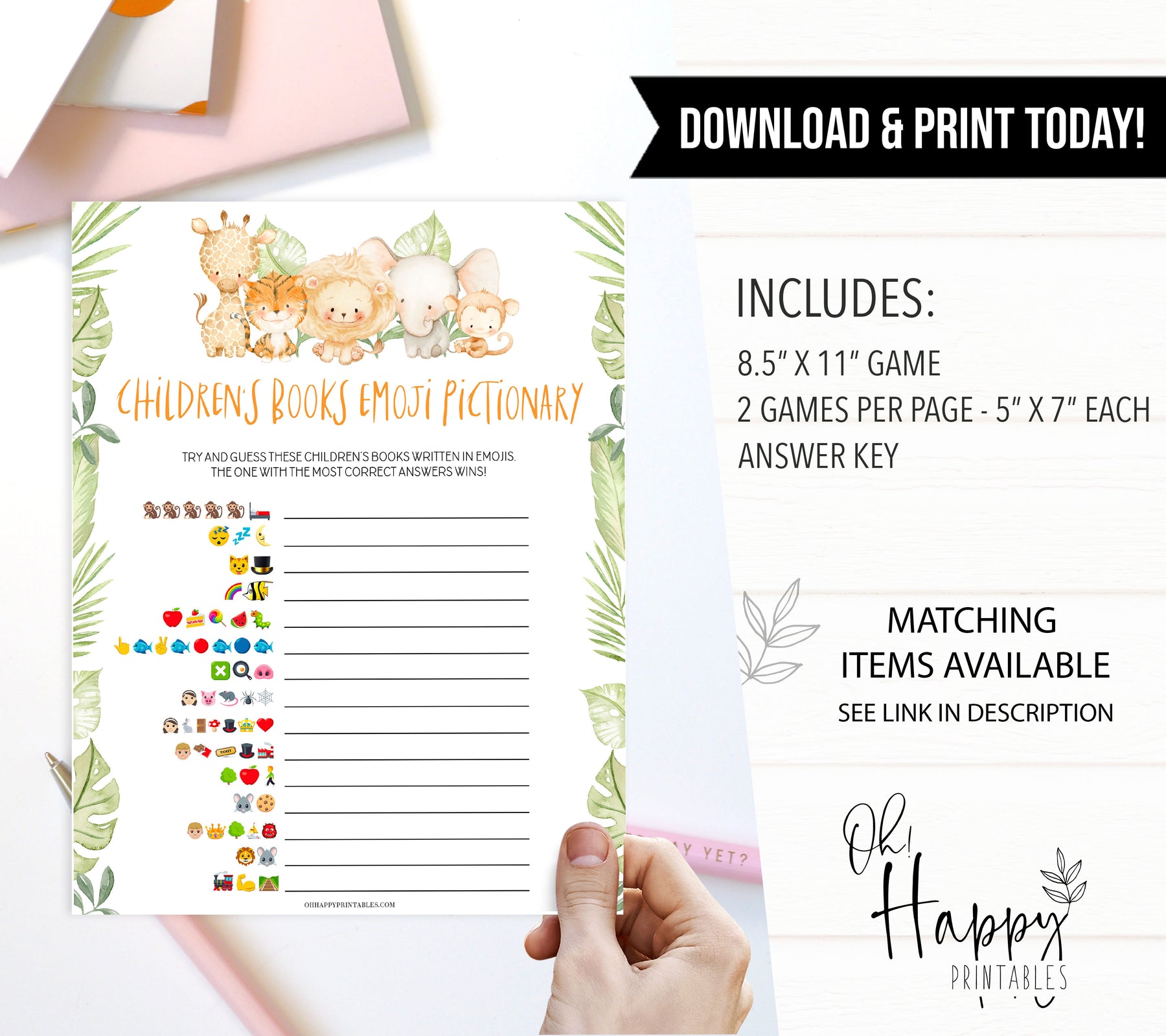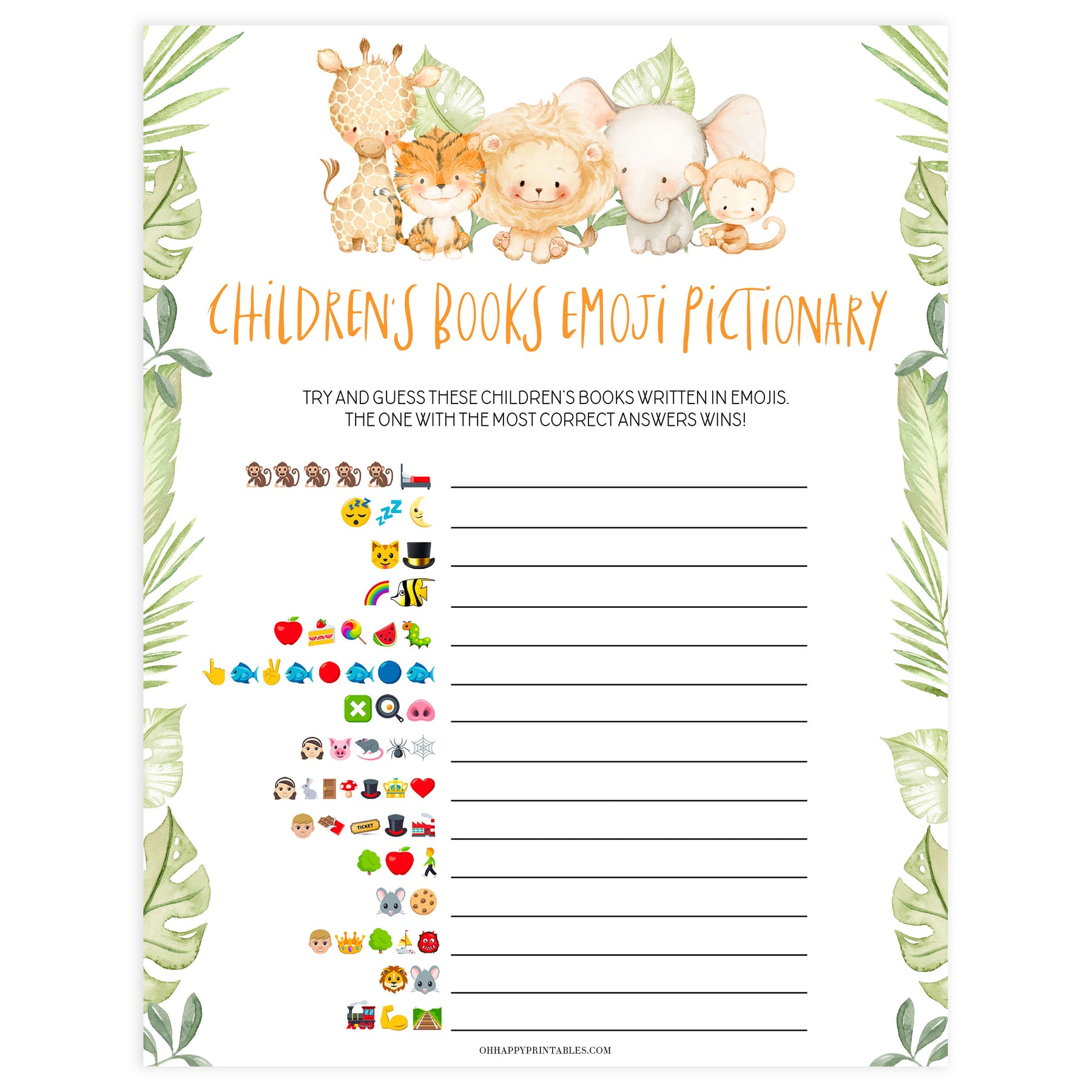 A hilarious baby shower game that's great for friends and family who like to have a bit of fun! Have your friends guess the Children books spelt out in emojis. This printable game comes with an answer key.
