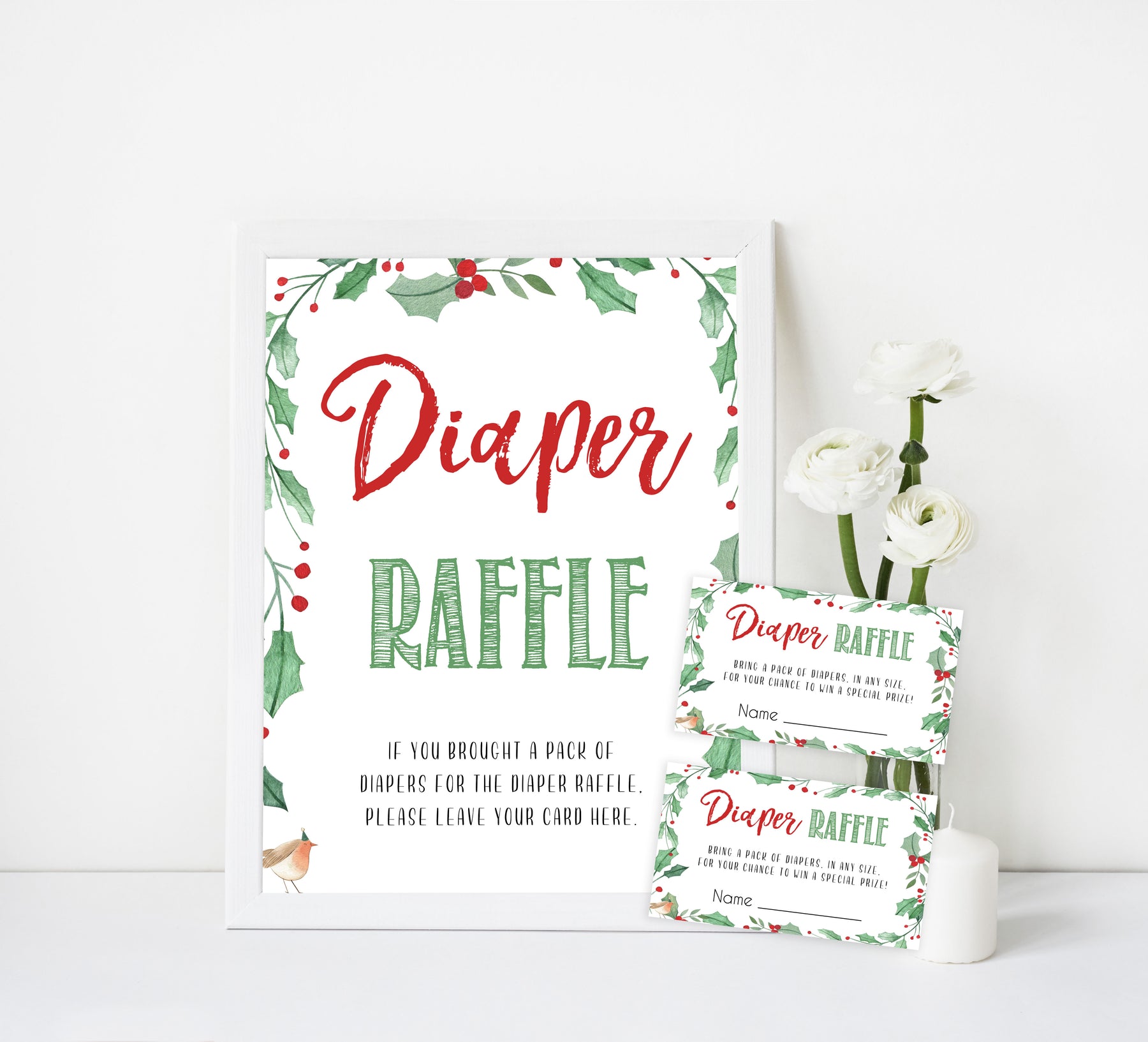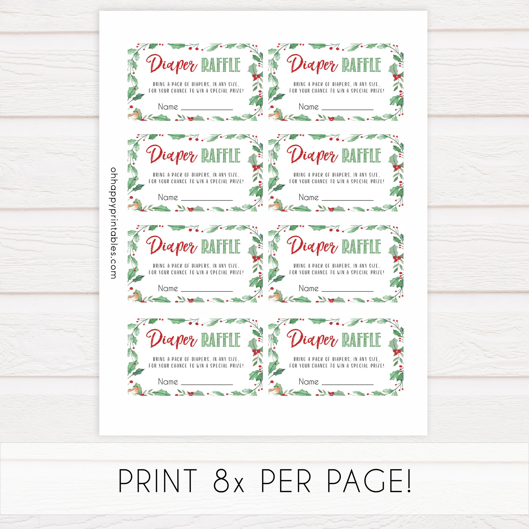 Bring your diapers to win a special prize! The Diaper Raffle is a classic baby shower game that all your friends will love. Give your friends the diaper raffle ticket with their invitation. Those who bring a pack of diapers gets their ticket entered into a hat to win a prize of your choosing. Simply download these tickets and print at home.