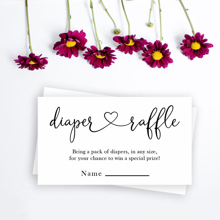 Bring your diapers to win a special prize! The Diaper Raffle is a classic baby shower game that all your friends will love. Give your friends the diaper raffle ticket with their invitation. Those who bring a pack of diapers gets their ticket entered into a hat to win a prize of your choosing. Simply download these tickets and print at home.