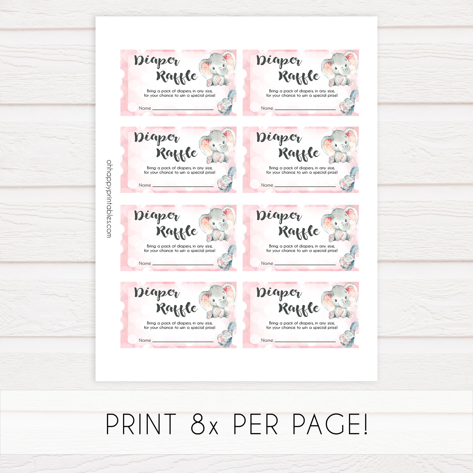 diaper raffle baby game, diaper raffle,  Printable baby shower games, fun abby games, baby shower games, fun baby shower ideas, top baby shower ideas, pink elephant baby shower, pink baby shower ideas