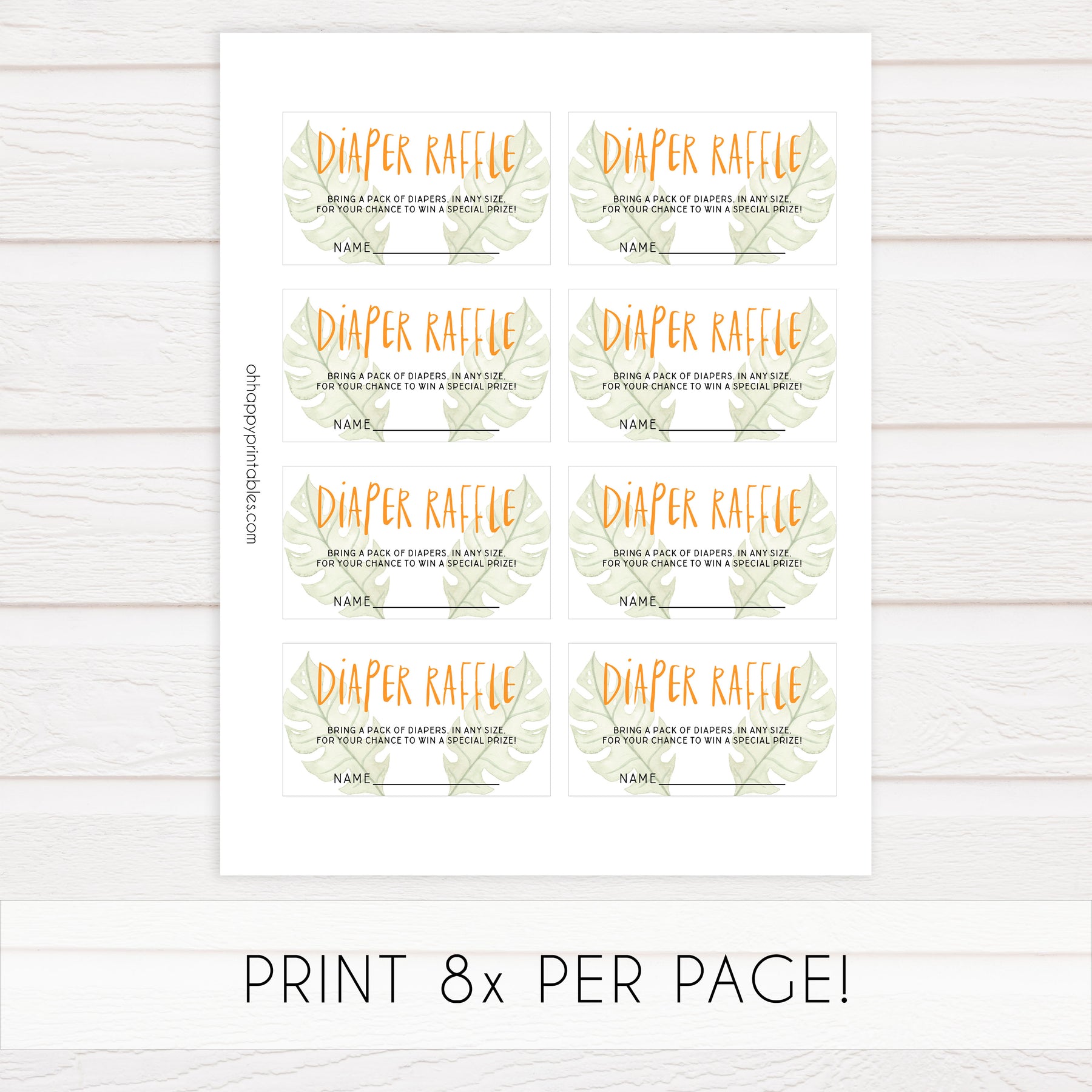 Bring your diapers to win a special prize! The Diaper Raffle is a classic baby shower game that all your friends will love. Give your friends the diaper raffle ticket with their invitation. Those who bring a pack of diapers gets their ticket entered into a hat to win a prize of your choosing. Simply download these tickets and print at home.