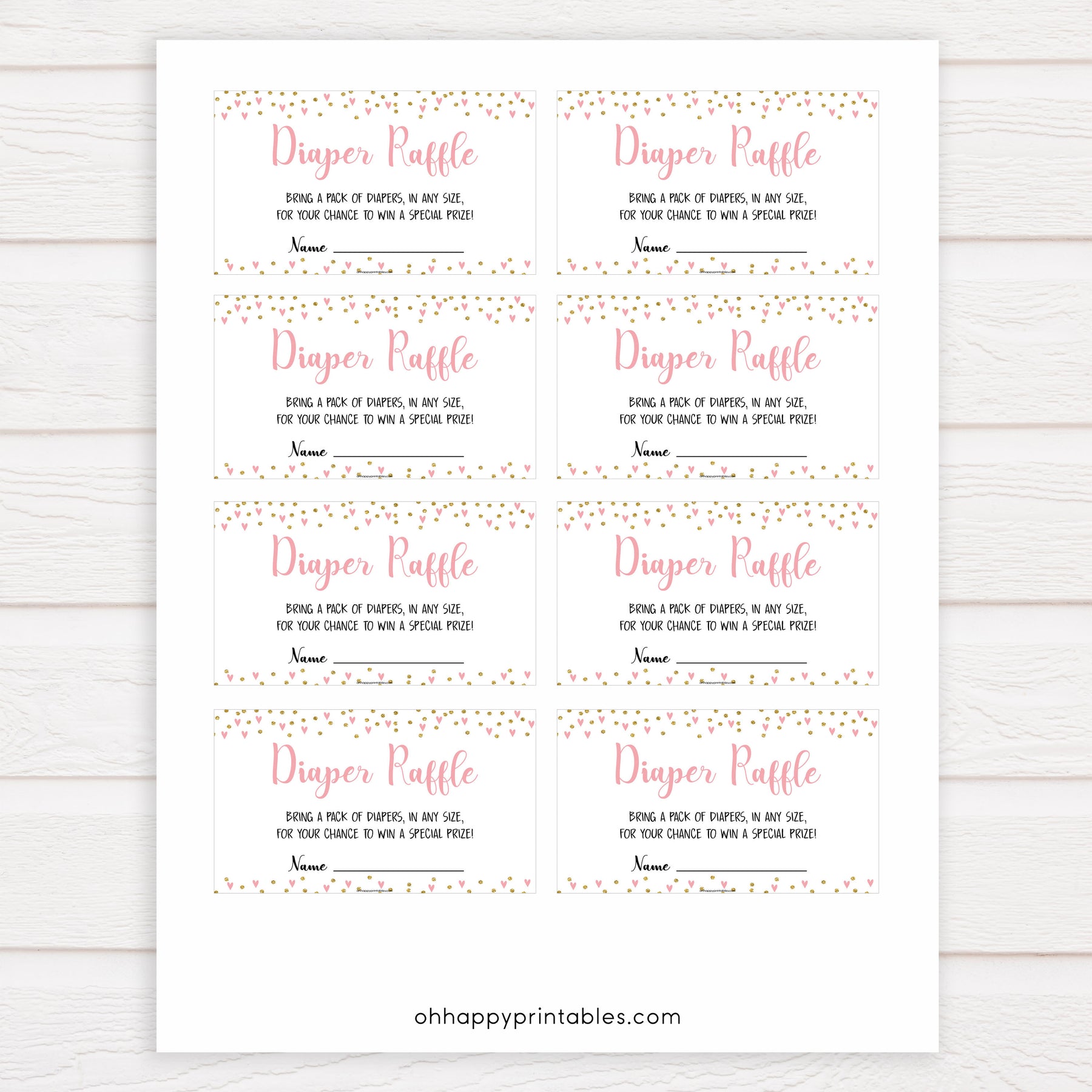 Bring your diapers to win a special prize! The Diaper Raffle is a classic baby shower game that all your friends will love. Give your friends the diaper raffle ticket with their invitation. Those who bring a pack of diapers gets their ticket entered into a hat to win a prize of your choosing. Simply download these tickets and print at home.