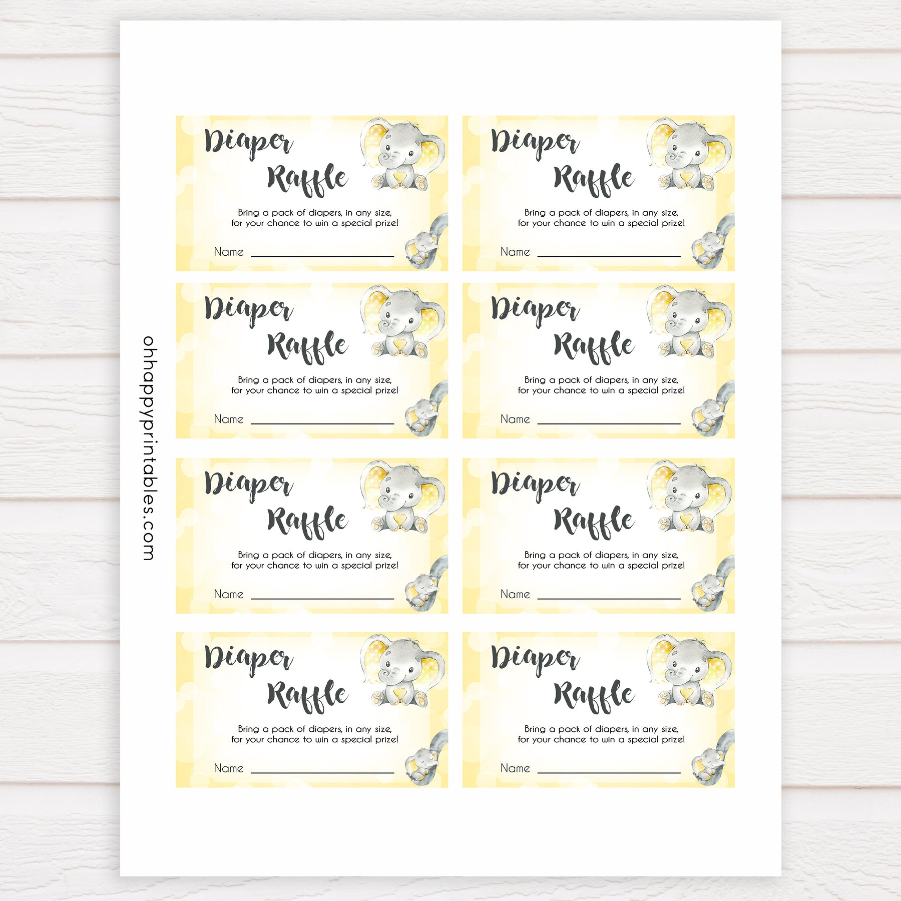 Diaper Raffle - Yellow Elephants