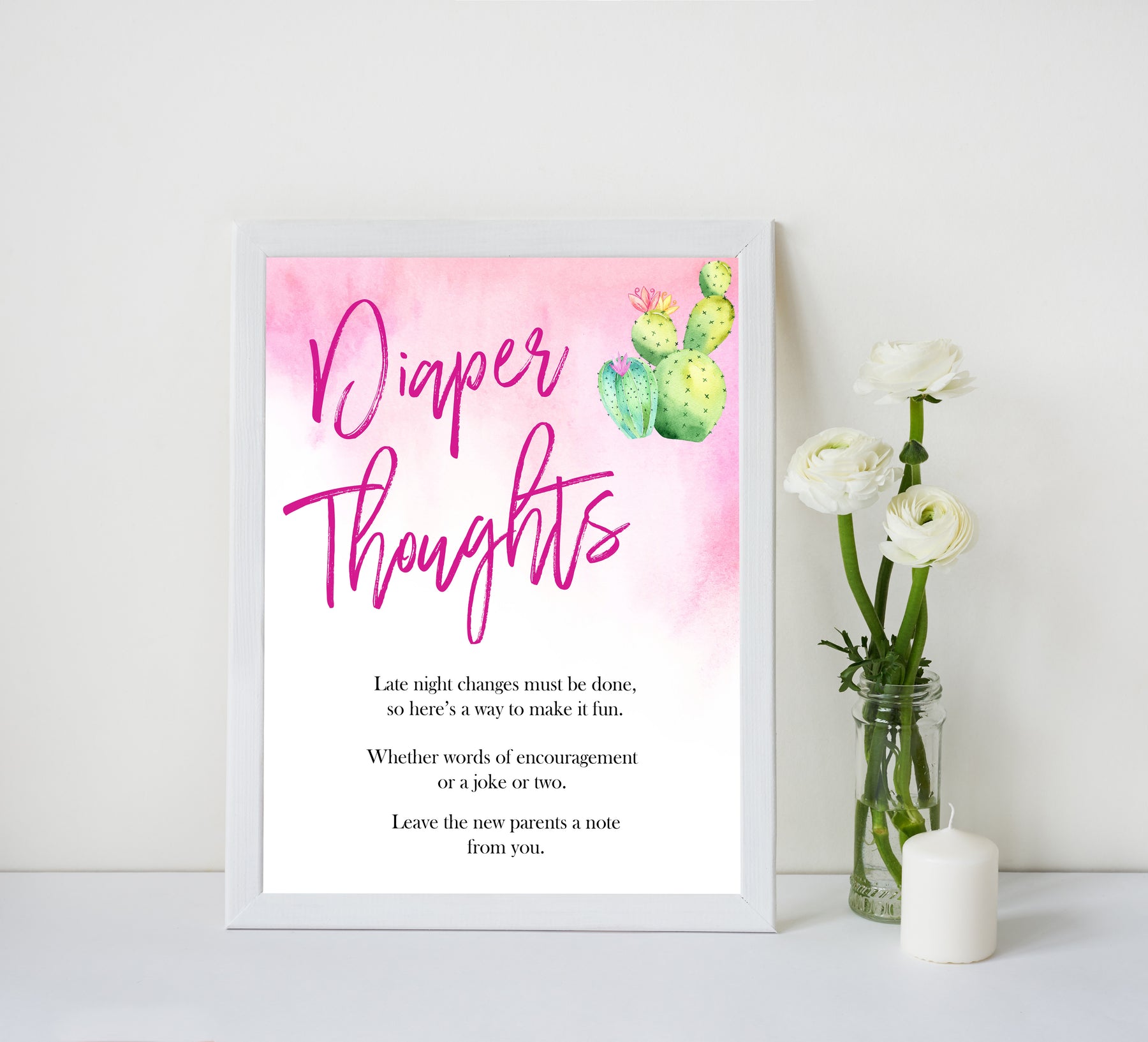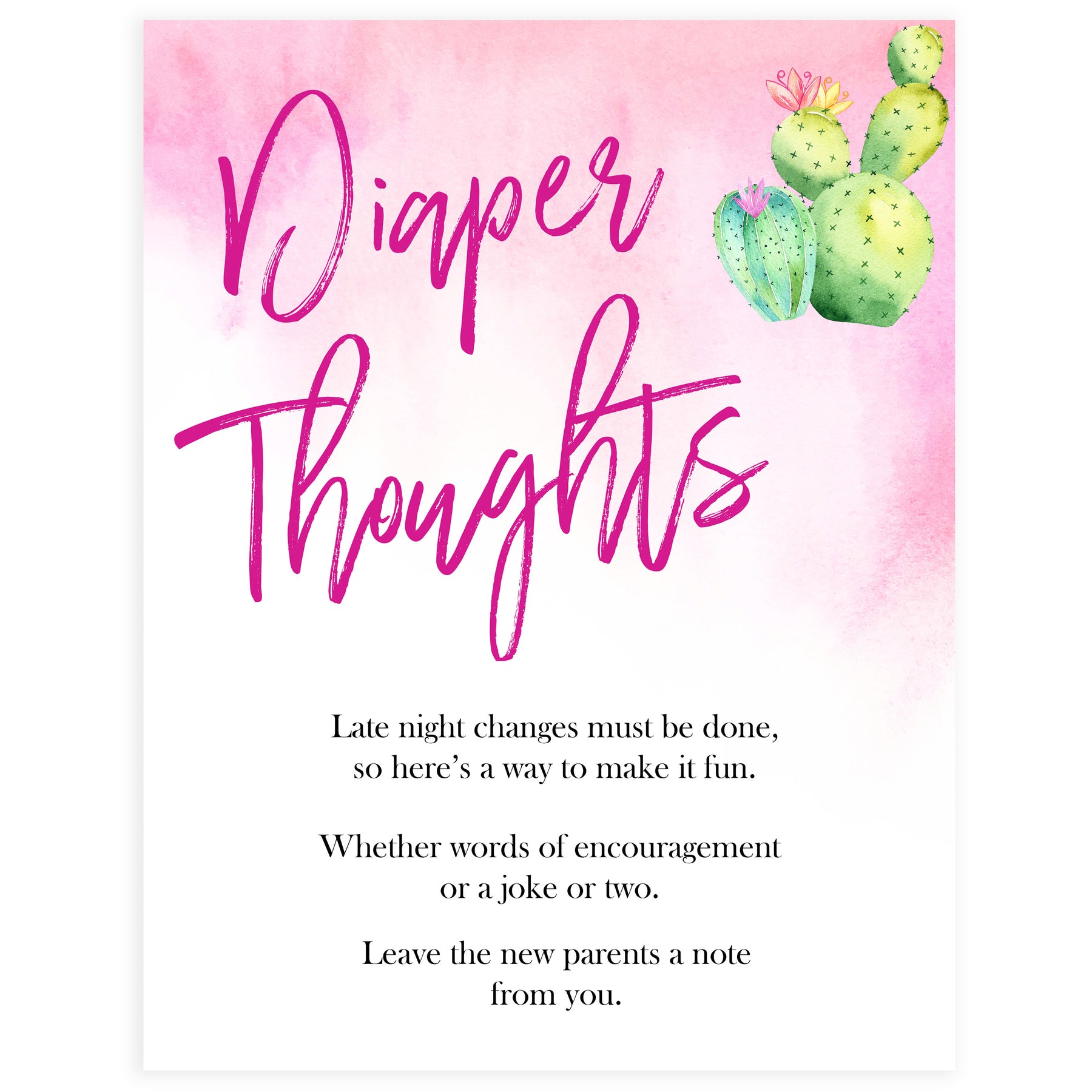 Help keep the new parents smiling through their first week of diaper changes by having this diaper signing station at your baby shower. Simply supply a stack of diapers on a table and some maker pens and have your friends and family write jokes, messages, or advice on the diapers for the parents to read while they are changing the baby.