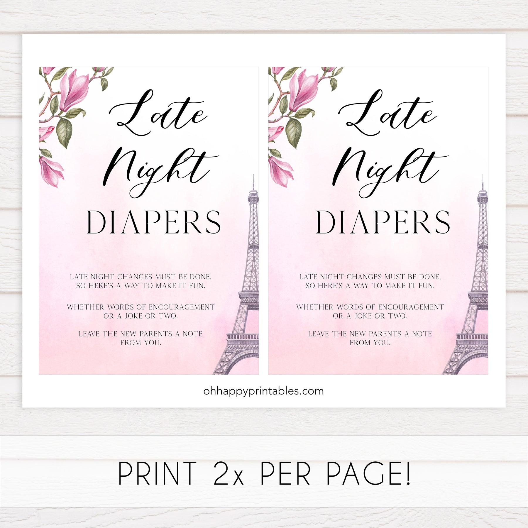 late night diapers game, Paris baby shower games, printable baby shower games, Parisian baby shower games, fun baby shower games