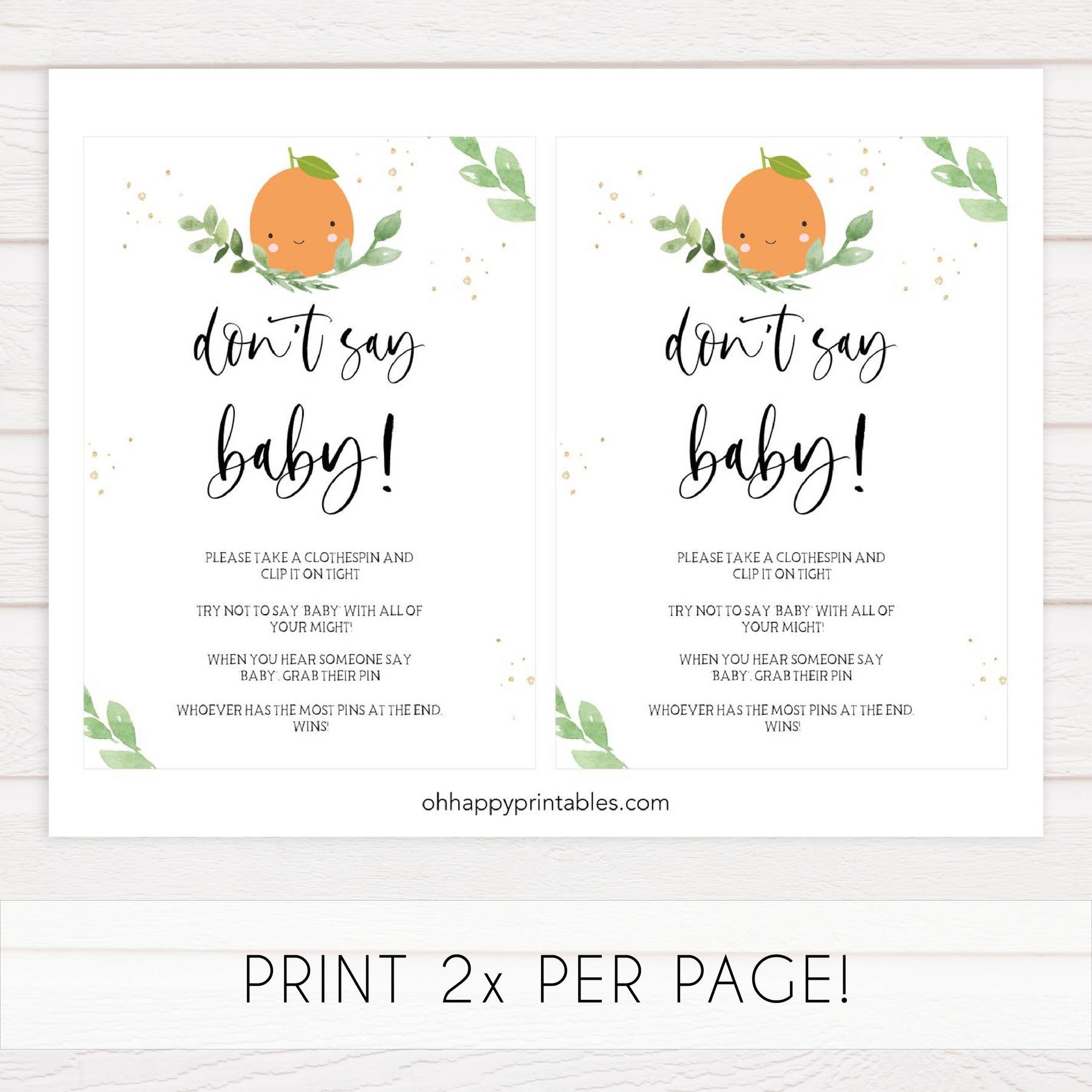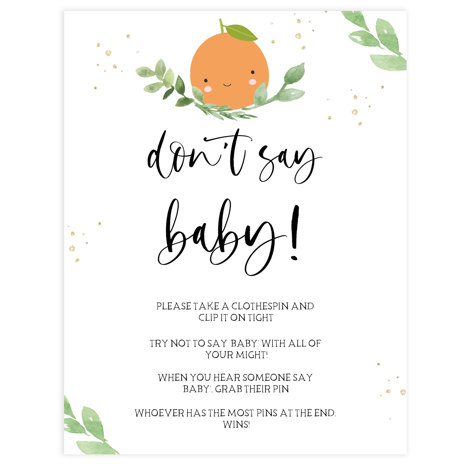 Place the 'Don't Say Baby' game sign and some clothes pins near the entrance of your baby shower. You friends and family will place a pin on their clothes and they hear another person say 'Baby', they can take all the pins from that person. One with the most pins at the end, wins!