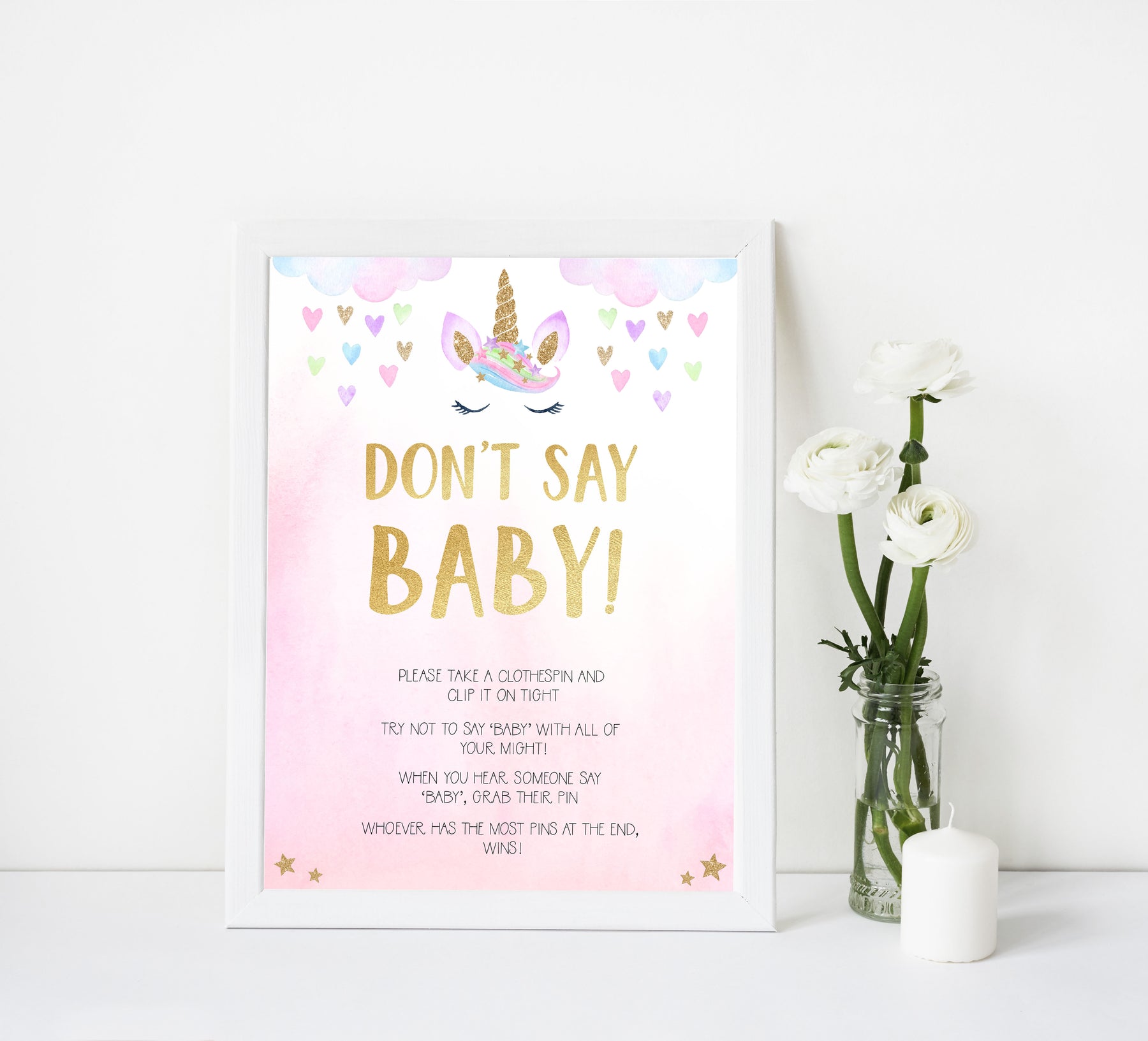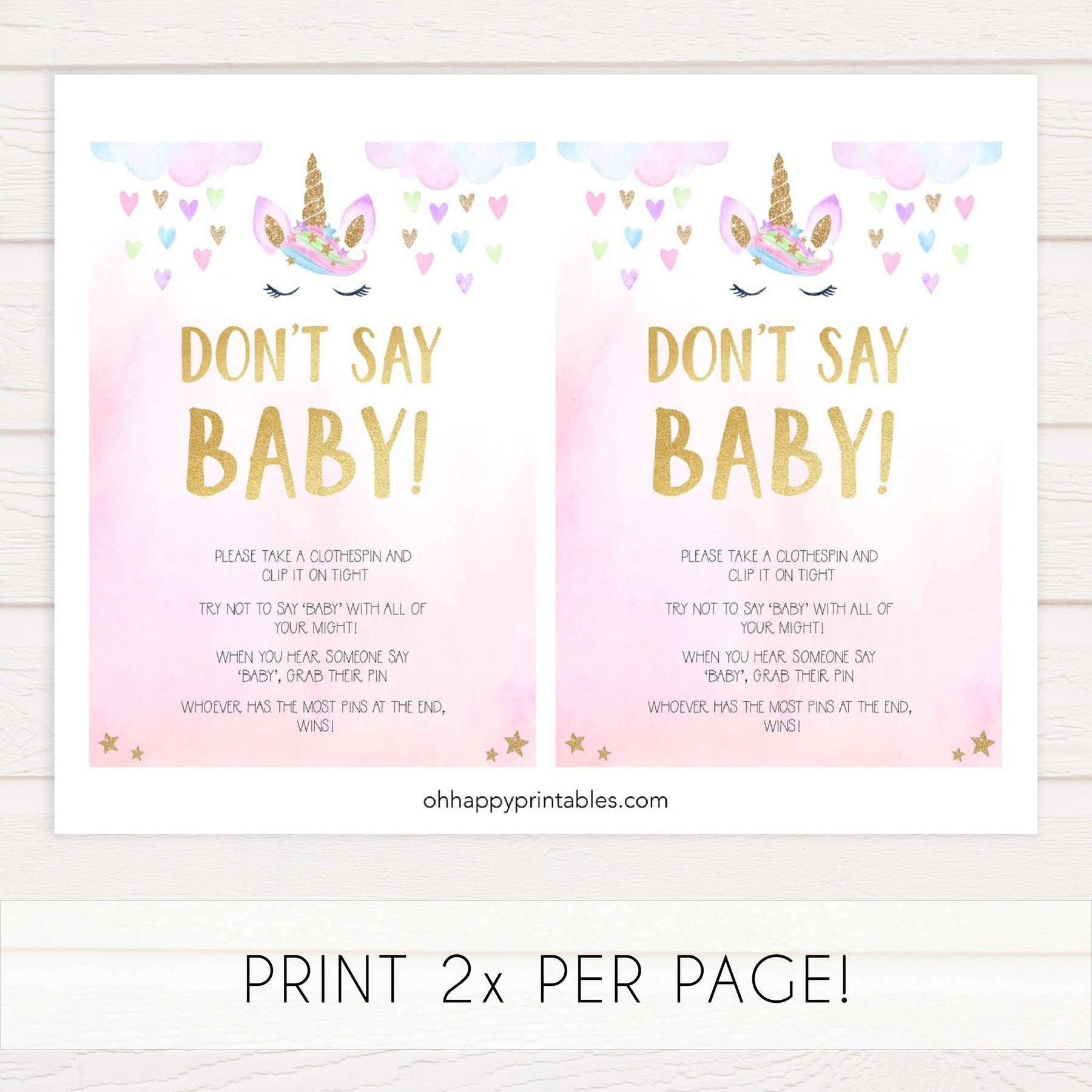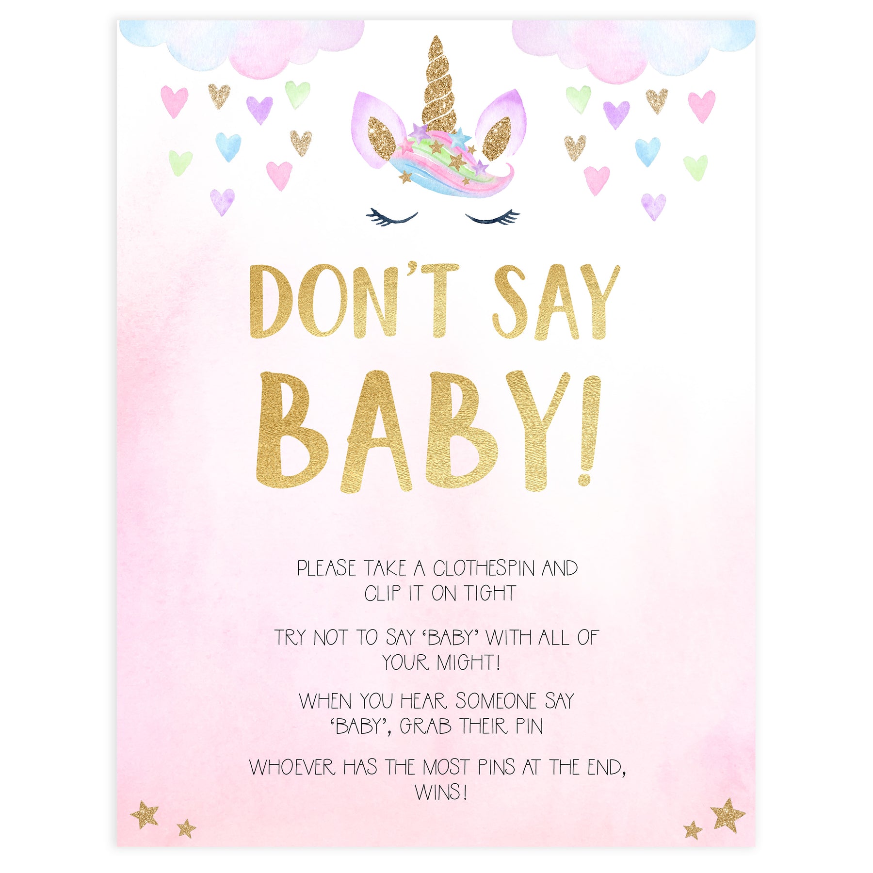 Place the 'Don't Say Baby' game sign and some clothes pins near the entrance of your baby shower. You friends and family will place a pin on their clothes and they hear another person say 'Baby', they can take all the pins from that person. One with the most pins at the end, wins!