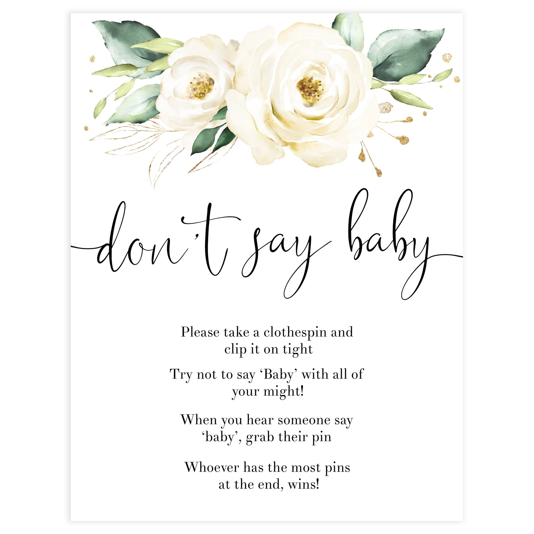 Place the 'Don't Say Baby' game sign and some clothes pins near the entrance of your baby shower. You friends and family will place a pin on their clothes and they hear another person say 'Baby', they can take all the pins from that person. One with the most pins at the end, wins!